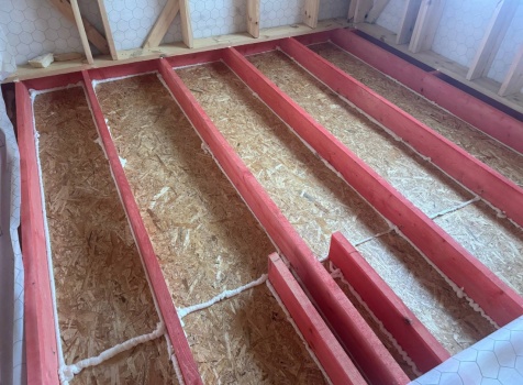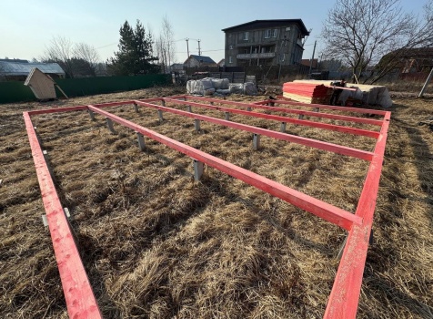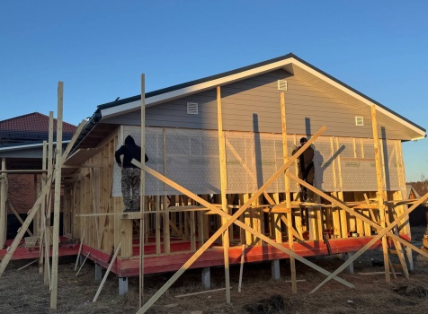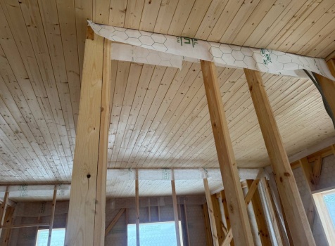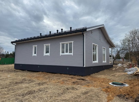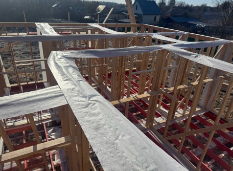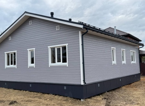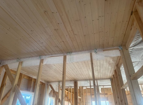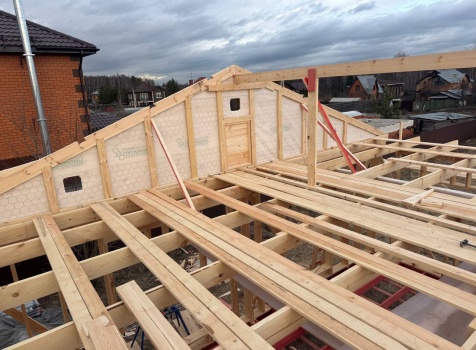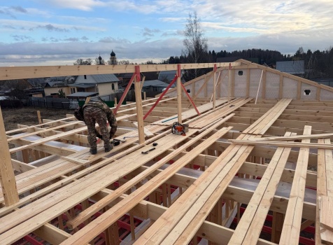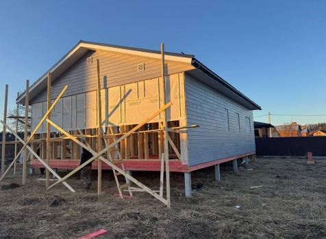 Постройка одноэтажного дома с открытой террасой общими размерами 12.0×11.50 ( 12.0×9.0 дом )каркасный (Камерной сушки) с утеплением в 200 мм (стены) под двухскатной крышей и ( 6.0×2.50 открытая терраса ) под отдельной односкатной крышей