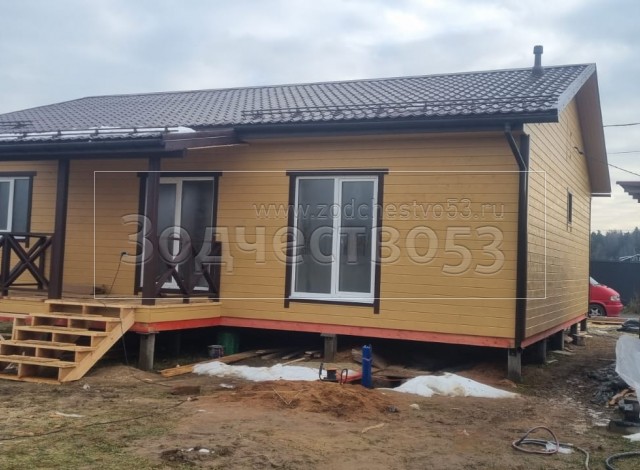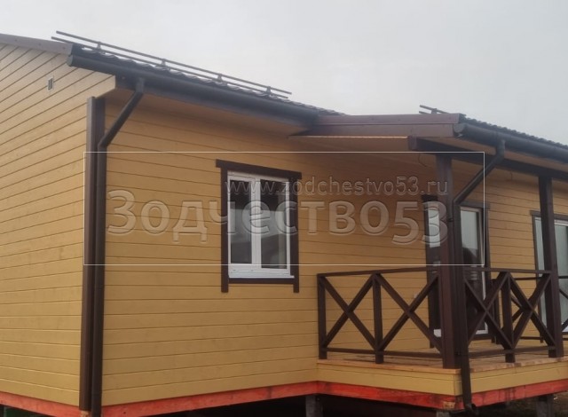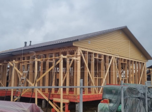 - Фронтоны по 10.0 метрам: каркасно-щитовые, обшиваются Имитацией бруса