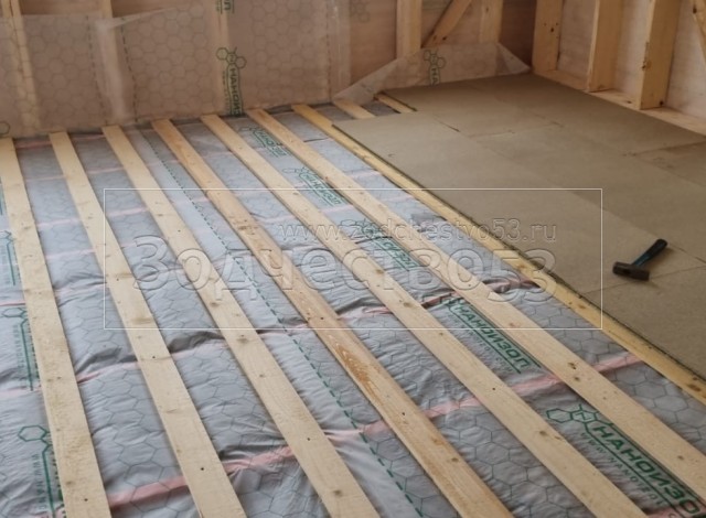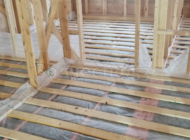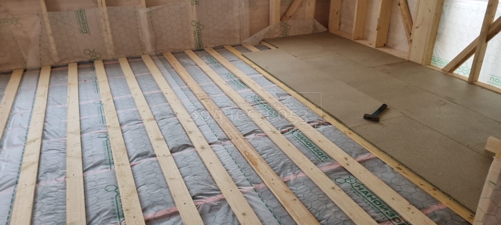 - Полы чистовые: 20х100 обрезная доска ( Камерной сушки ) шаг 30 см плюс Квик Дек 22 мм.
