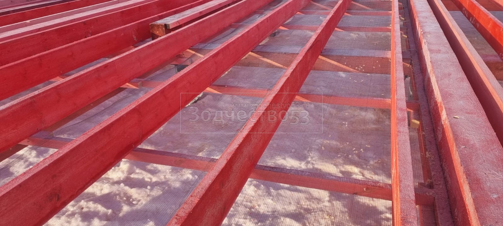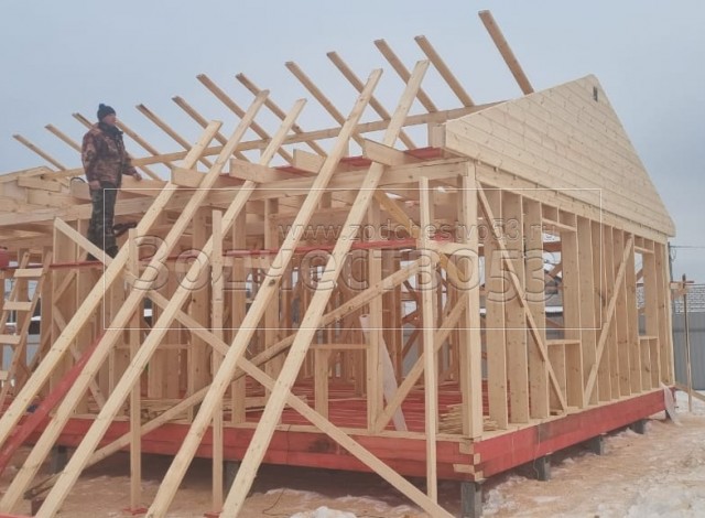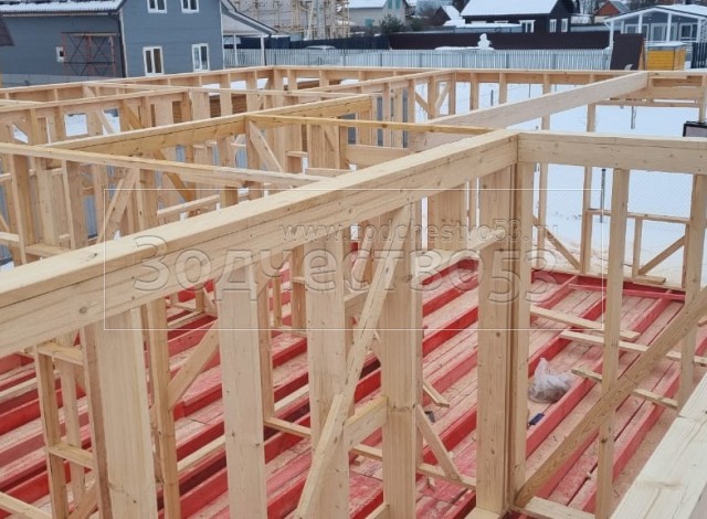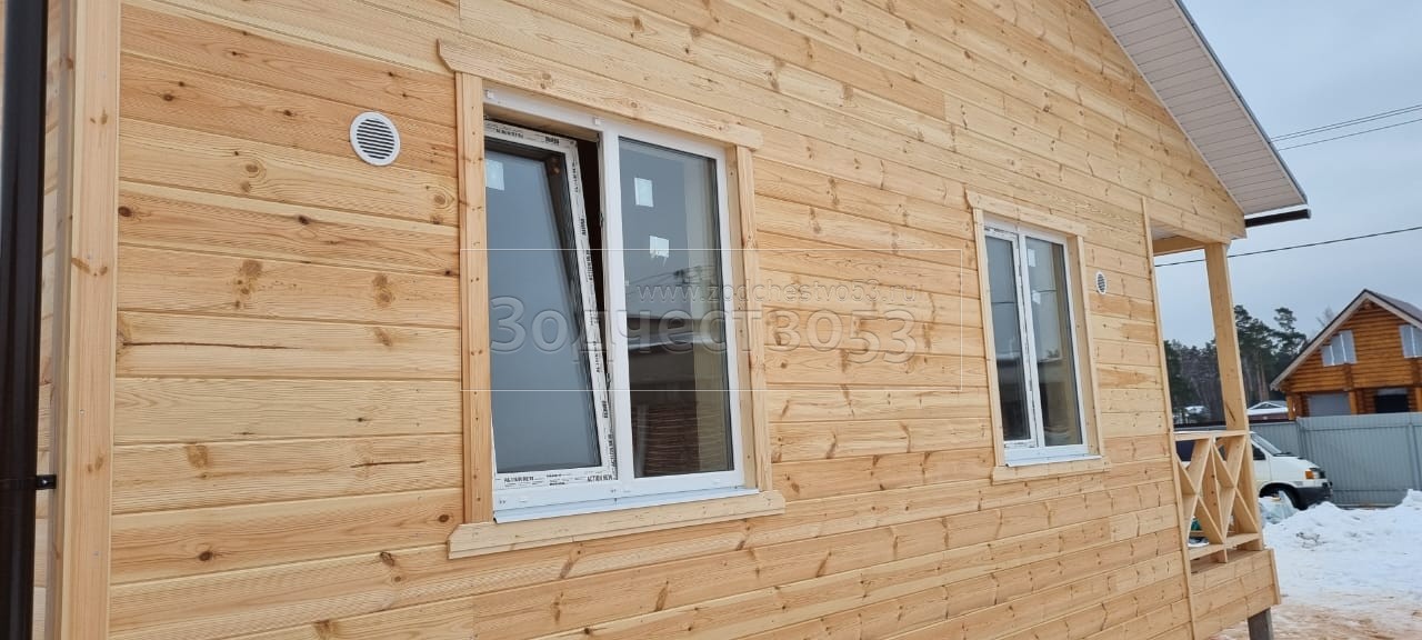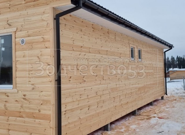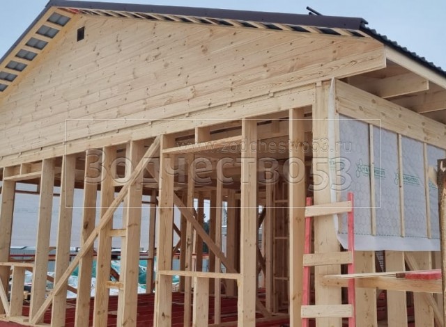 - Фронтоны по 9.0 метрам: каркасно-щитовые, обшиваются Имитацией бруса