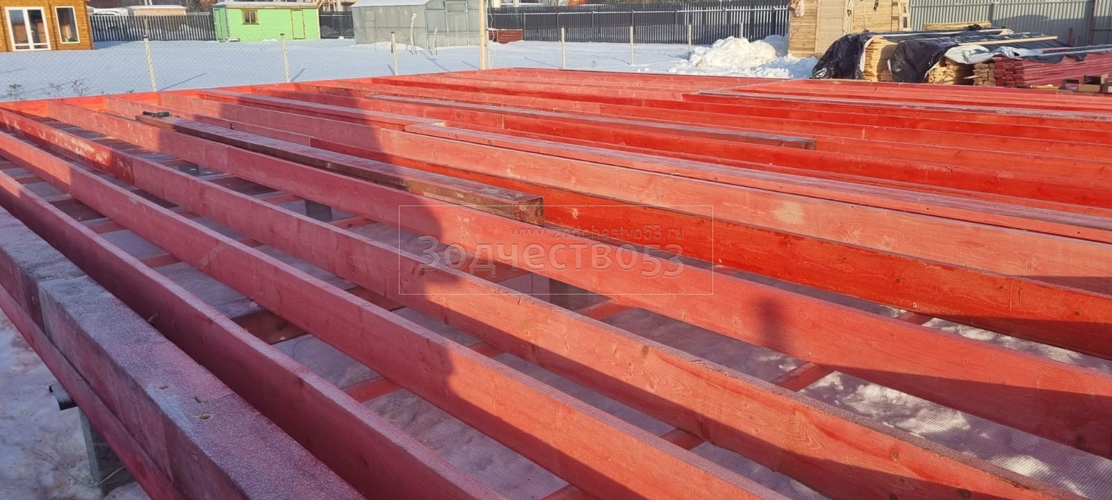 - Обвязка: обвязка из обрезного бруса 200х150 двойная