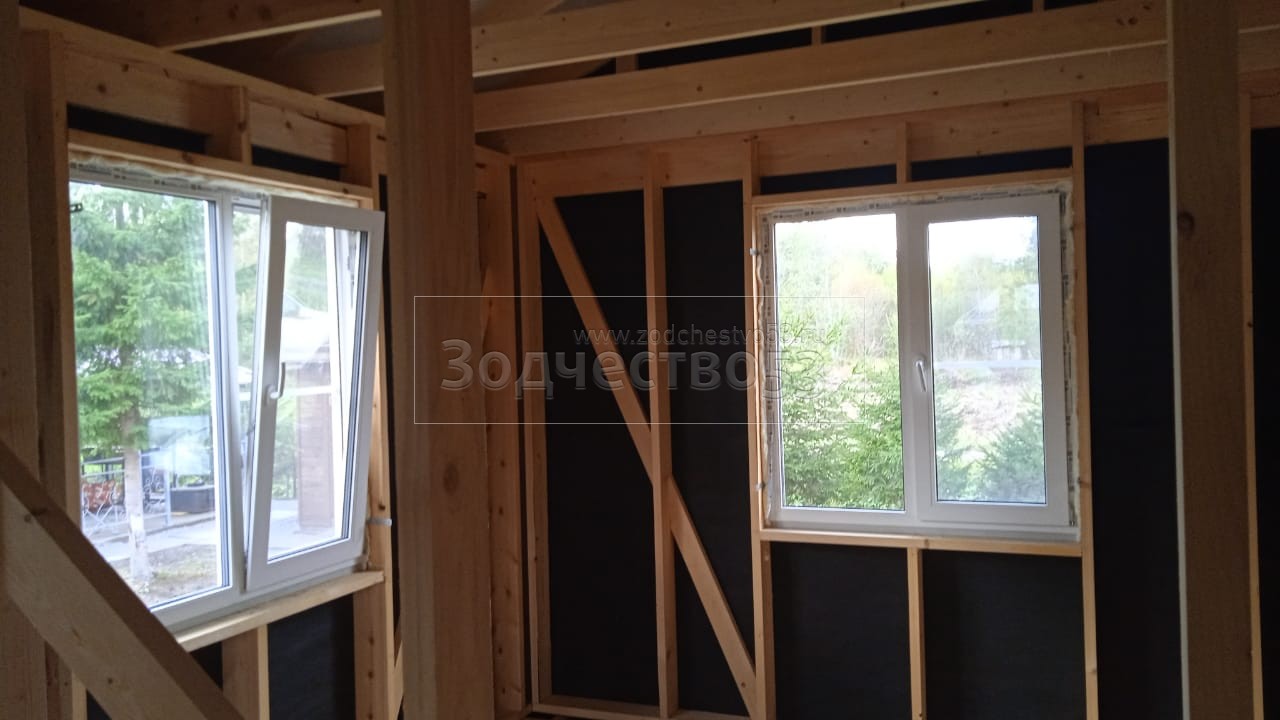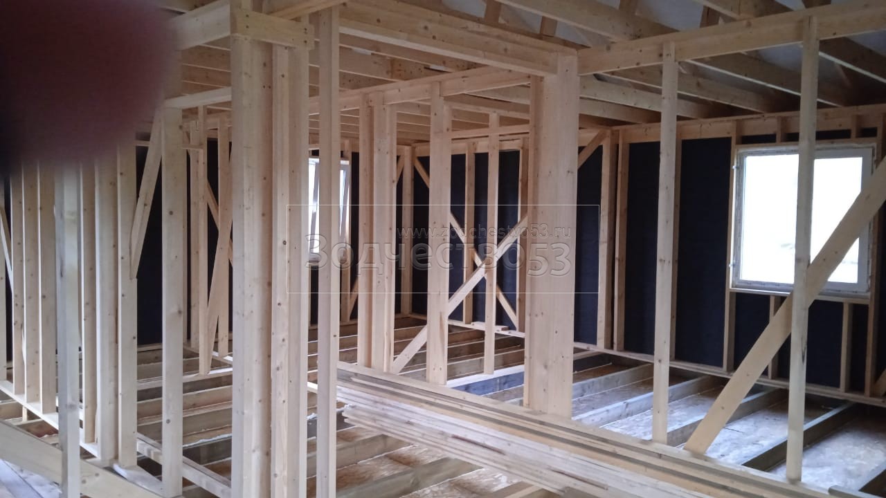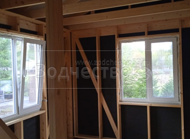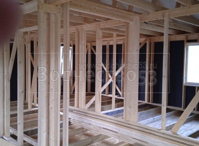 - Фронтоны по 9.0 метрам: каркасно-щитовые, обшиваются Имитацией бруса