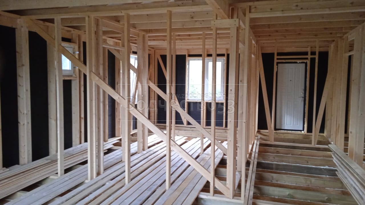 - Стены: каркасно-щитовые, обшиваются снаружи Имитацией бруса. Внутри стены без утепления и отделки
