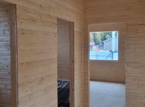 • Стены: каркасно-щитовые, обшиваются снаружи Имитацией бруса, а внутри сухой Вагонкой