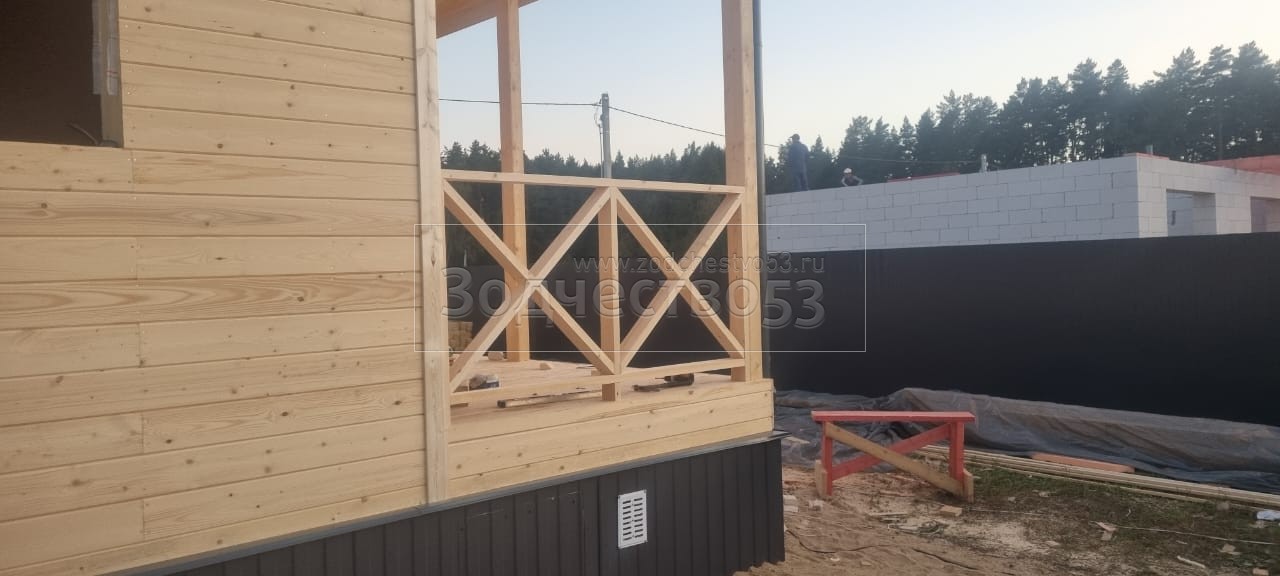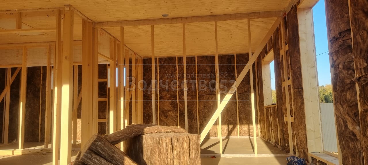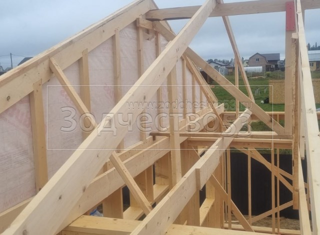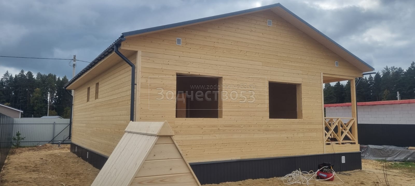 - Фронтоны по 9.0 метрам: каркасно-щитовые,обшиваются Имитацией бруса