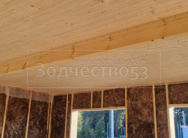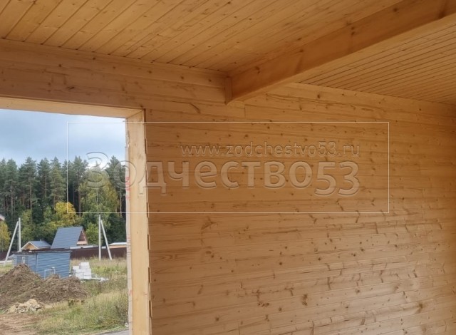 - Стены: каркасно-щитовые, обшиваются снаружи Имитацией бруса, а внутри сухой Вагонкой