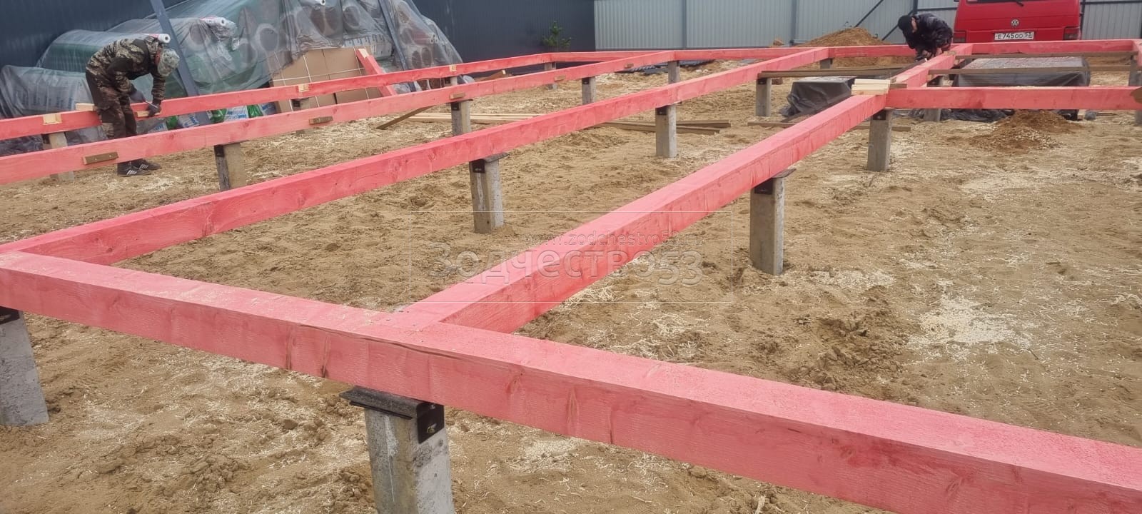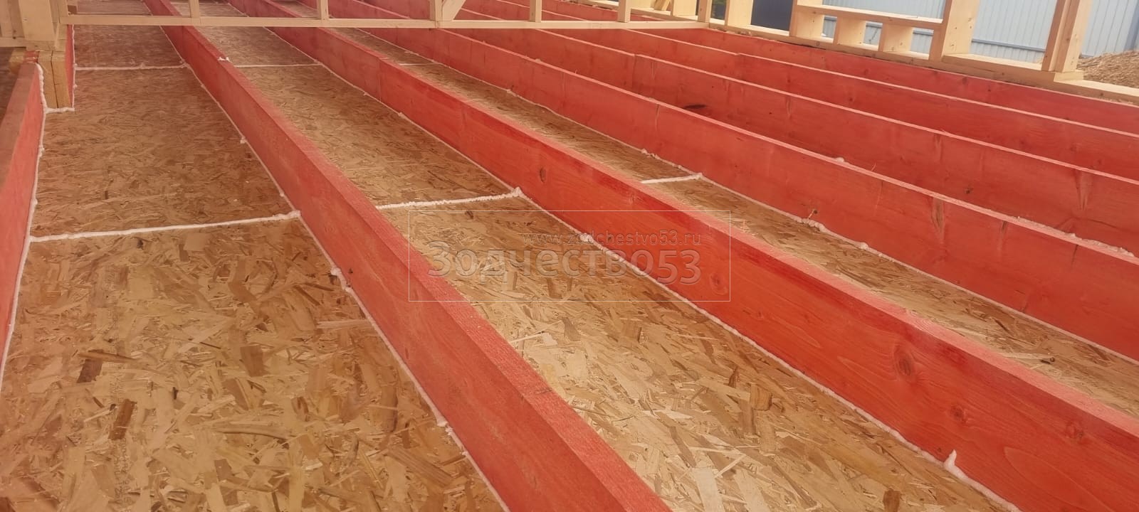 - Обвязка: двойная, первый венец из бруса 150×150 и второй венец из бруса 50×200 ( на ребро )