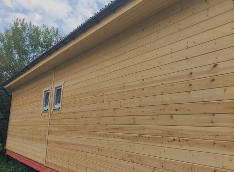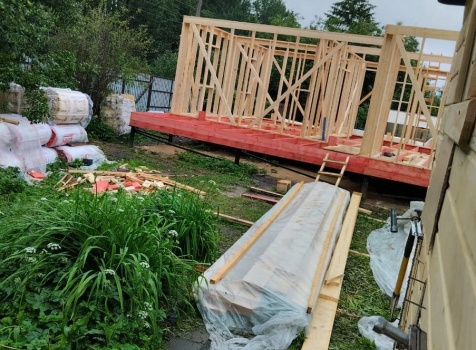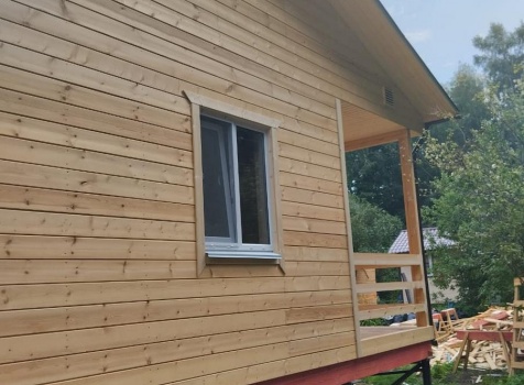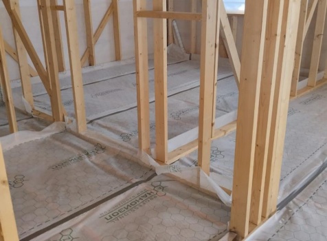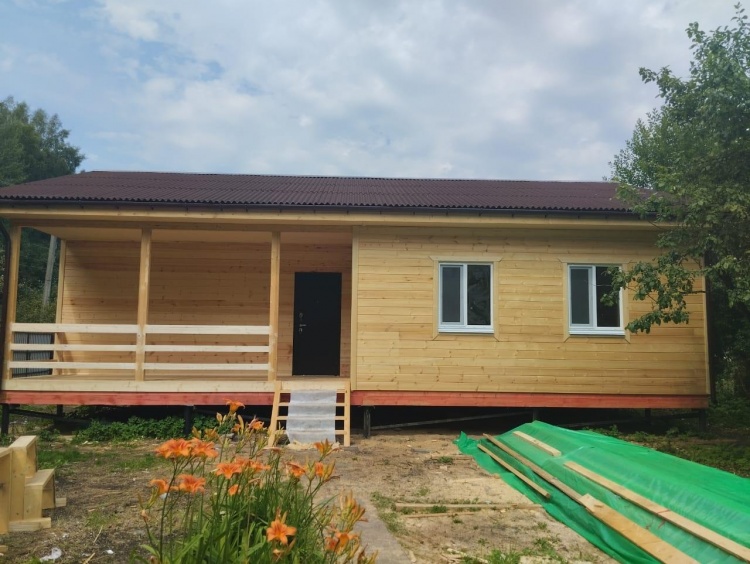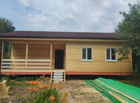 Постройка одноэтажного дома с открытой террасой, общими размерами 12.0×9.0 каркасный (Камерной сушки) с утеплением в 150 мм ( стены ) под общей двухскатной крышей по проекту : https://zodchestvo53.ru/dzhenna