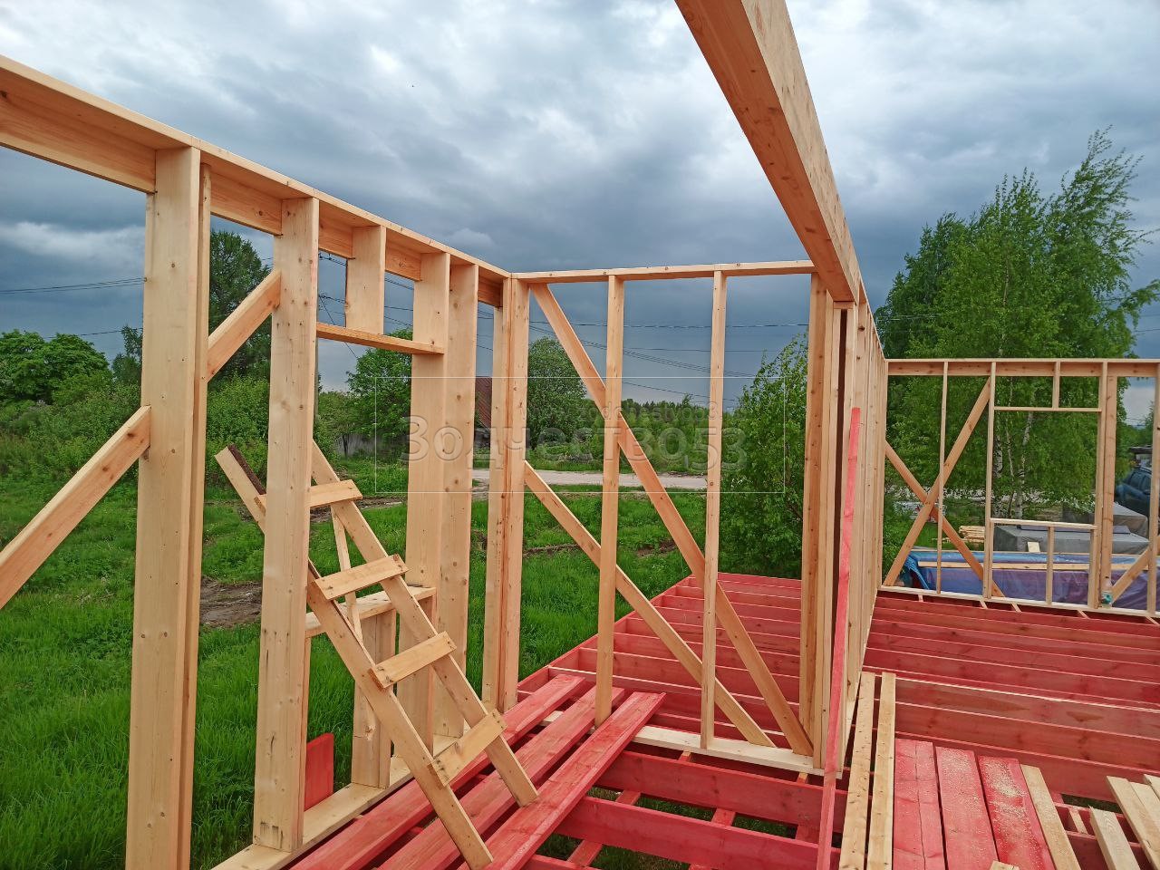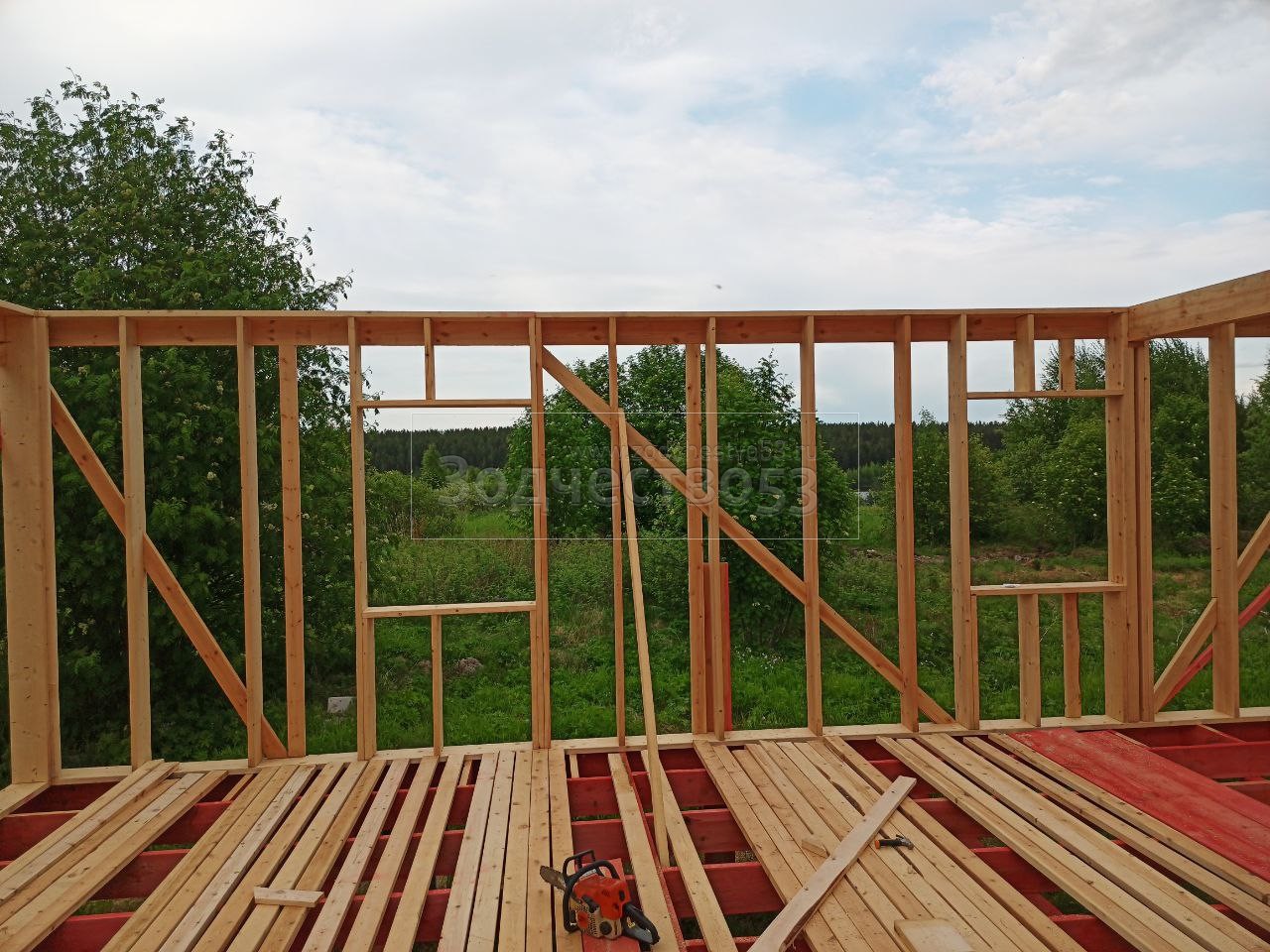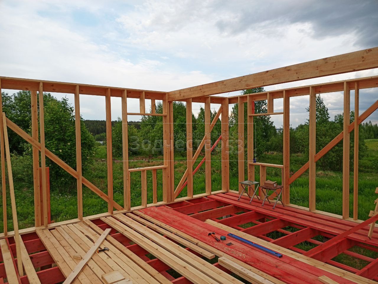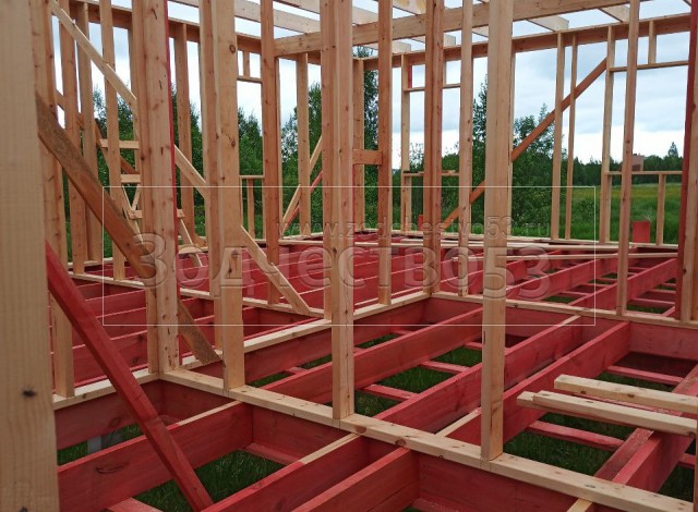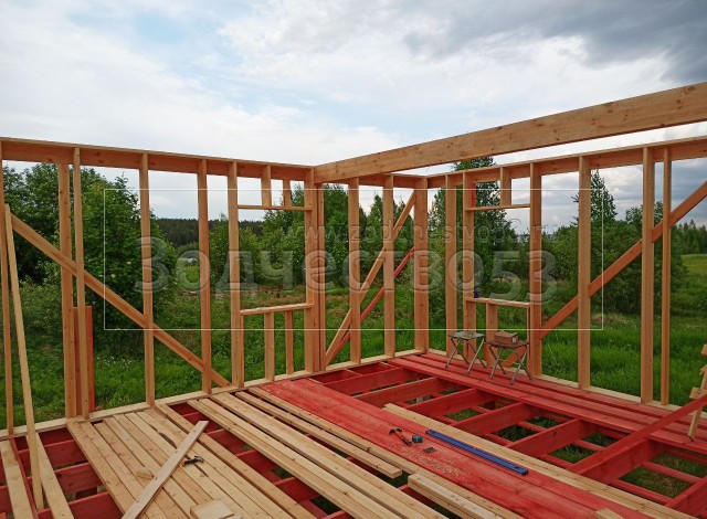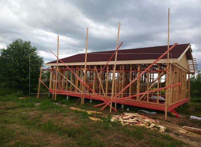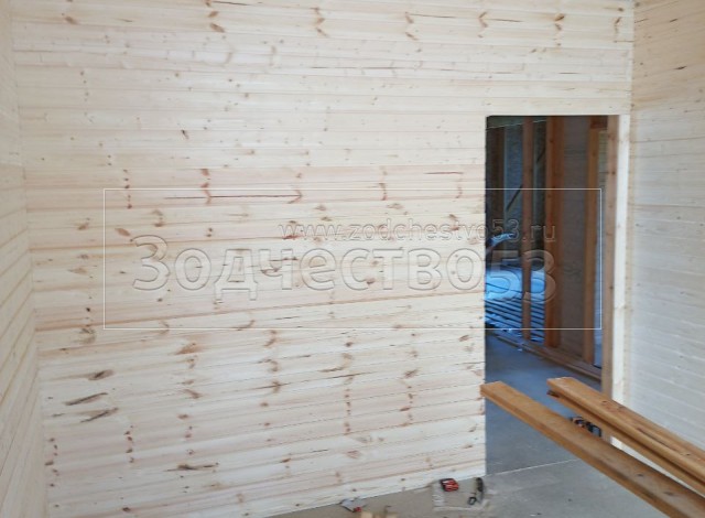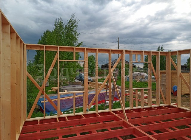 - Стены : каркасно-щитовые, обшиваются снаружи Влагостойкой фанерой ОСБ и Имитацией бруса, а внутри сухой Вагонкой