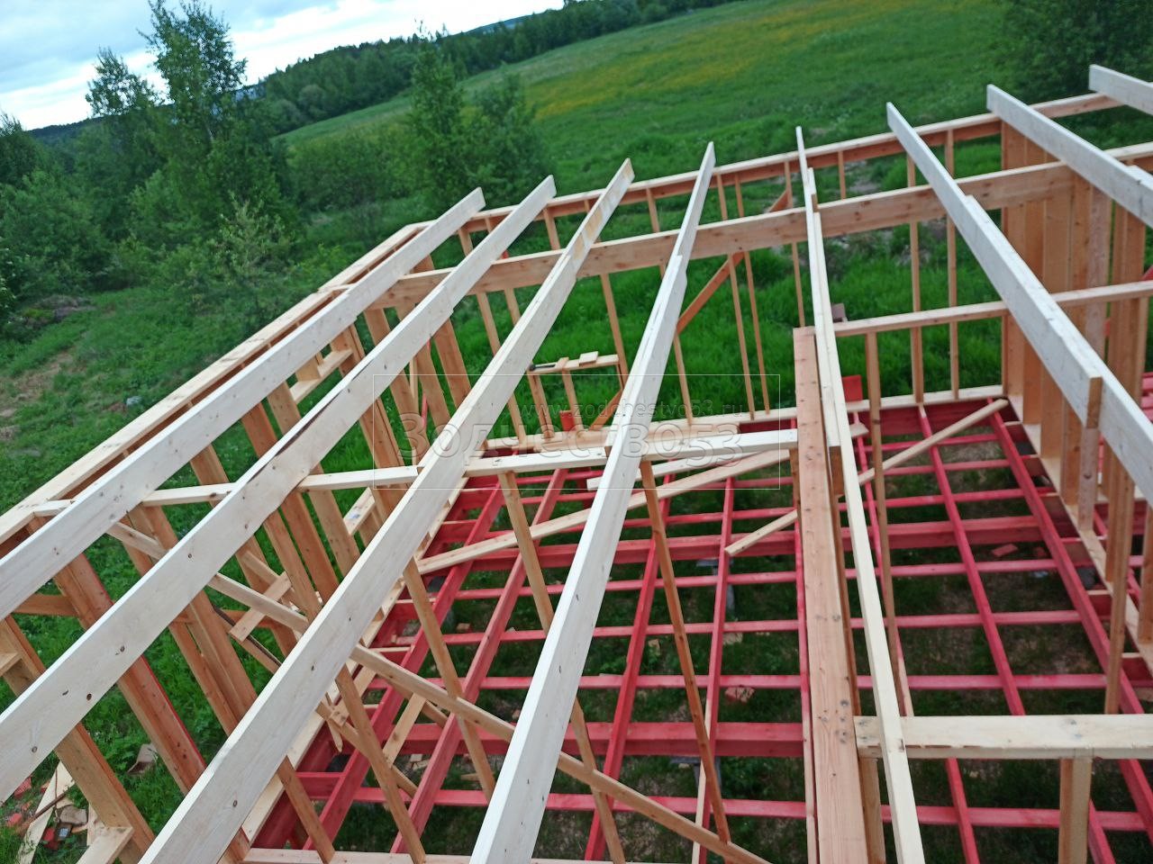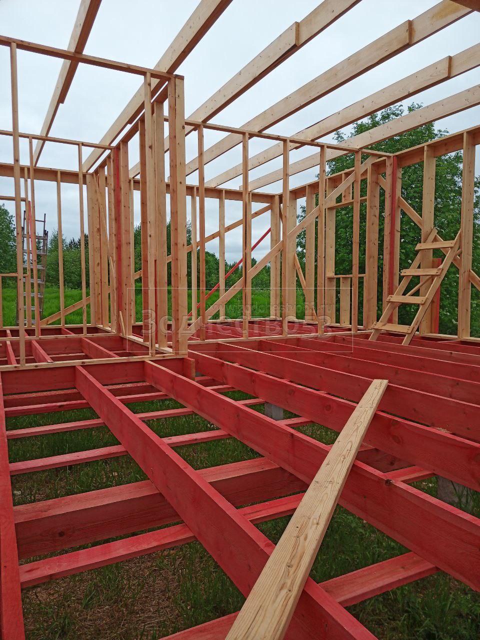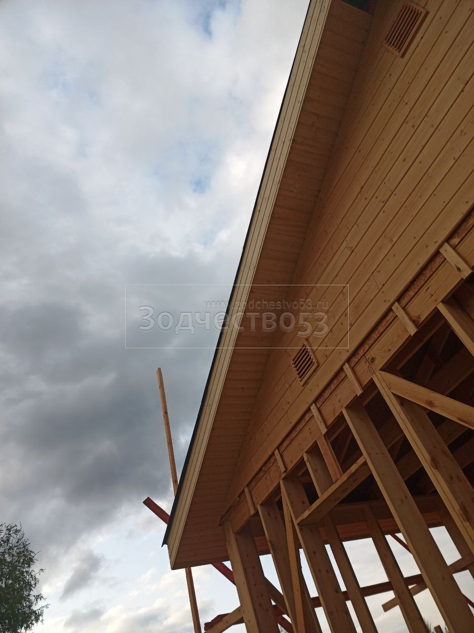 - Фронтоны по 9.0 метрам : каркасно-щитовые, обшиваются Влагостойкой фанерой ОСБ и Имитацией бруса класса