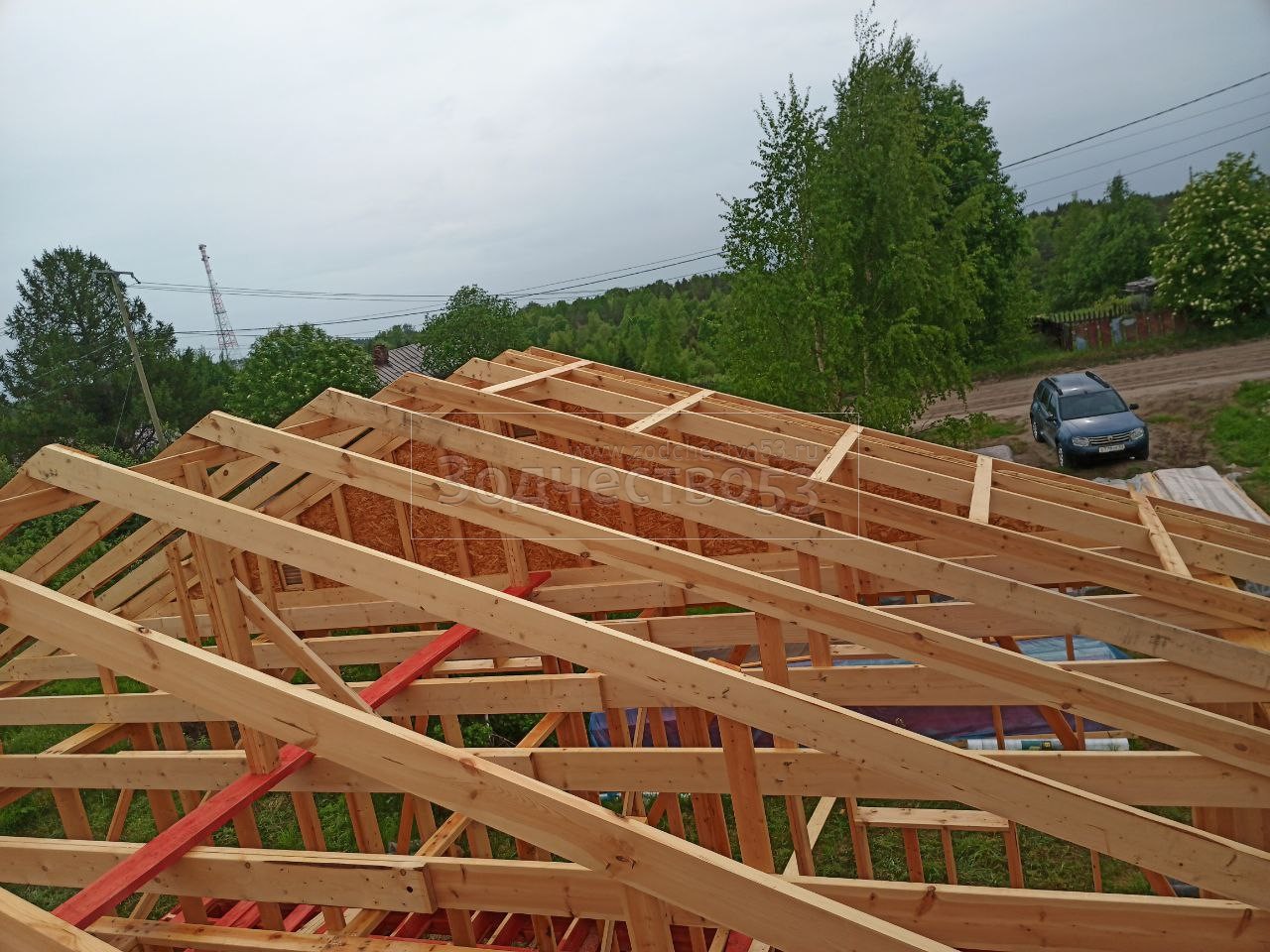 - Обрешетка крыши : обрезная доска