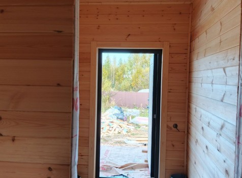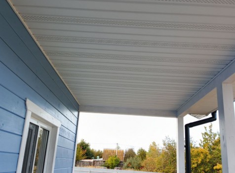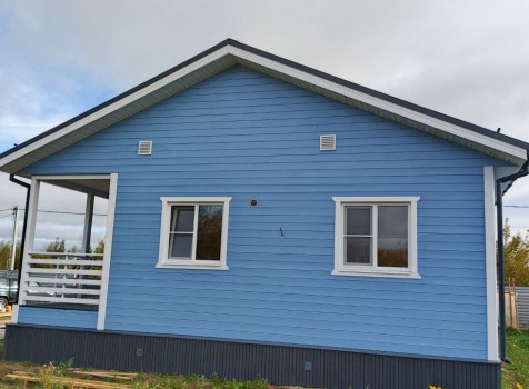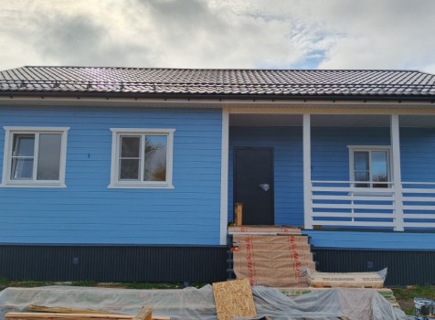 Постройка одноэтажного дома с открытой террасой общими размерами 12.0×9.0 каркасный Камерной сушки с утеплением в 150 мм ( стены ) под общей двухскатной крышей : https://zodchestvo53.ru/dzhenna