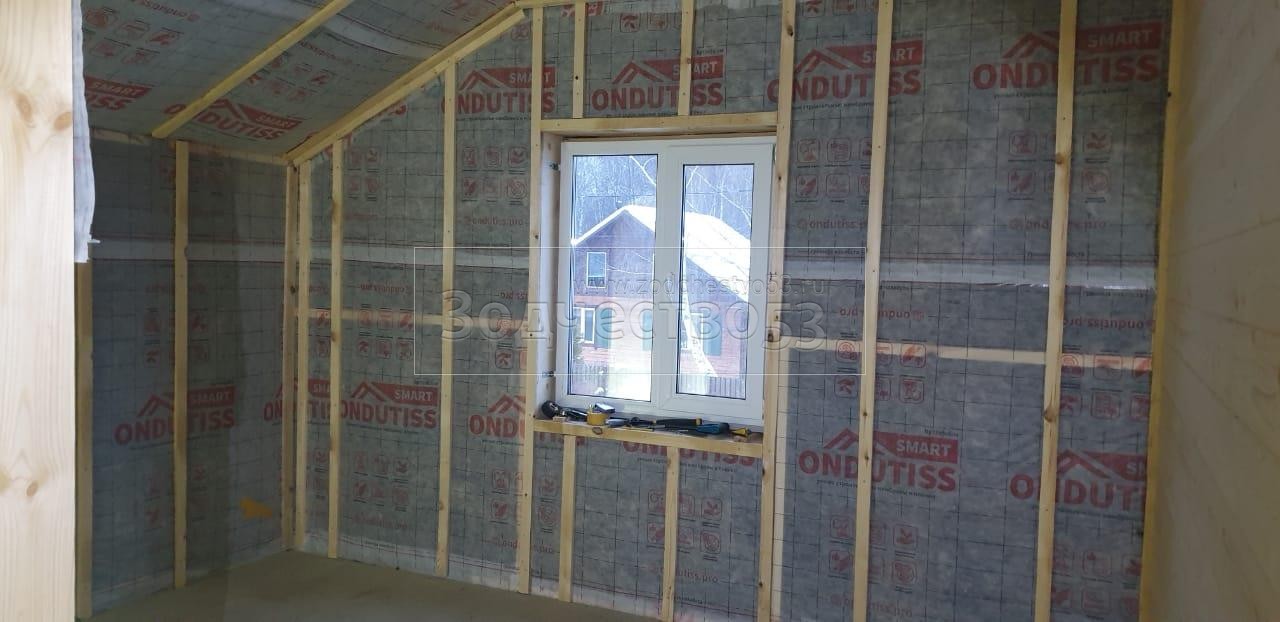 - Стены : периметр дома с гаражом улица и стена , разделяющая гараж с домом : каркасно-щитовые обшиваются снаружи Влагостойкой фанерой ОСБ и Имитацией бруса , внутри сухой Имитацией бруса