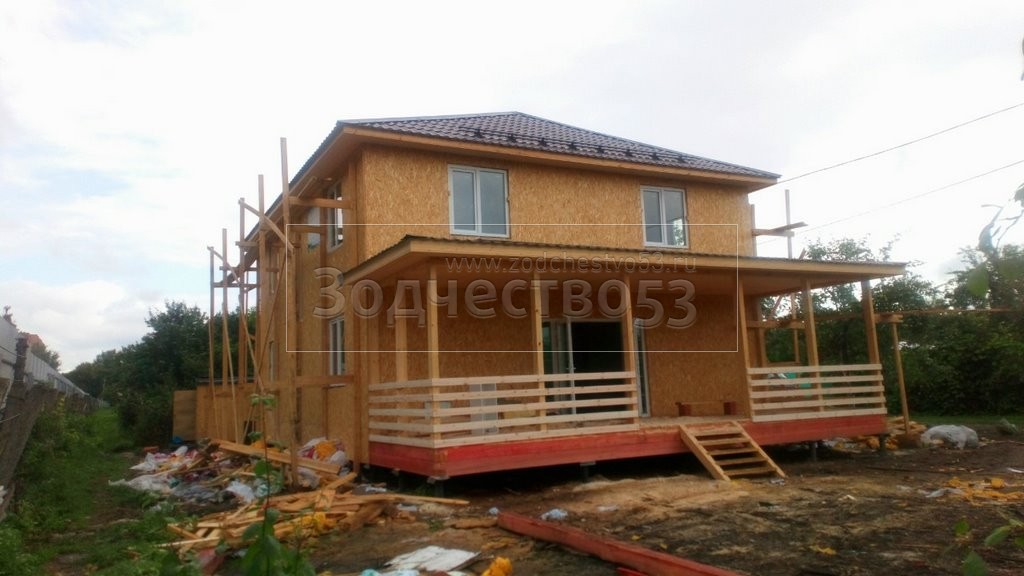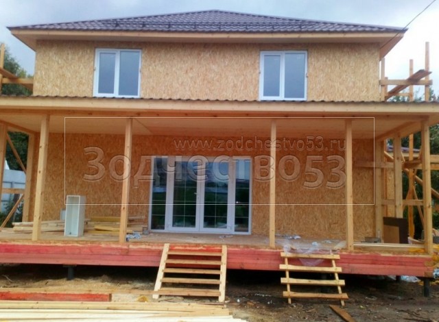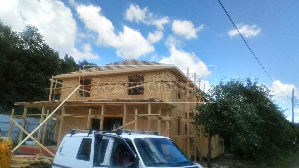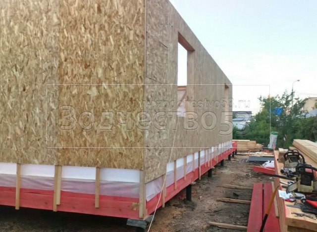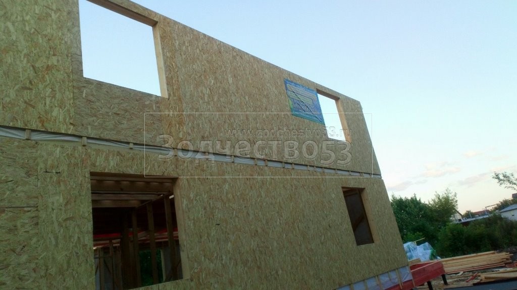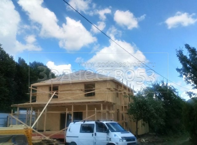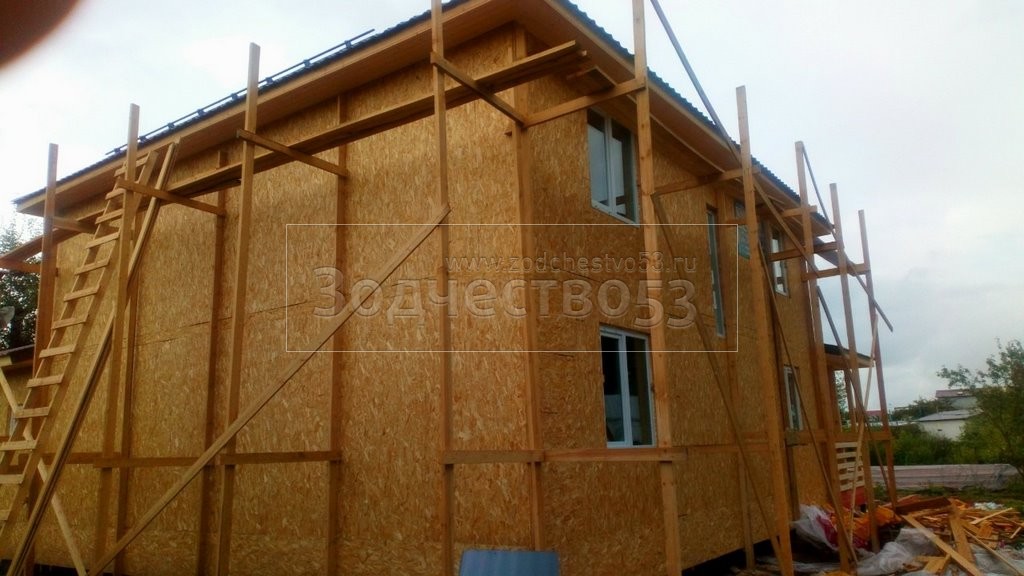 - Стены первого и второго этажей: каркасно-щитовые 40*150,с наружи обшивается фанерой ОСБ-9мм,внутри - вагонкой.
