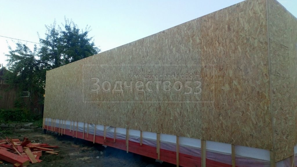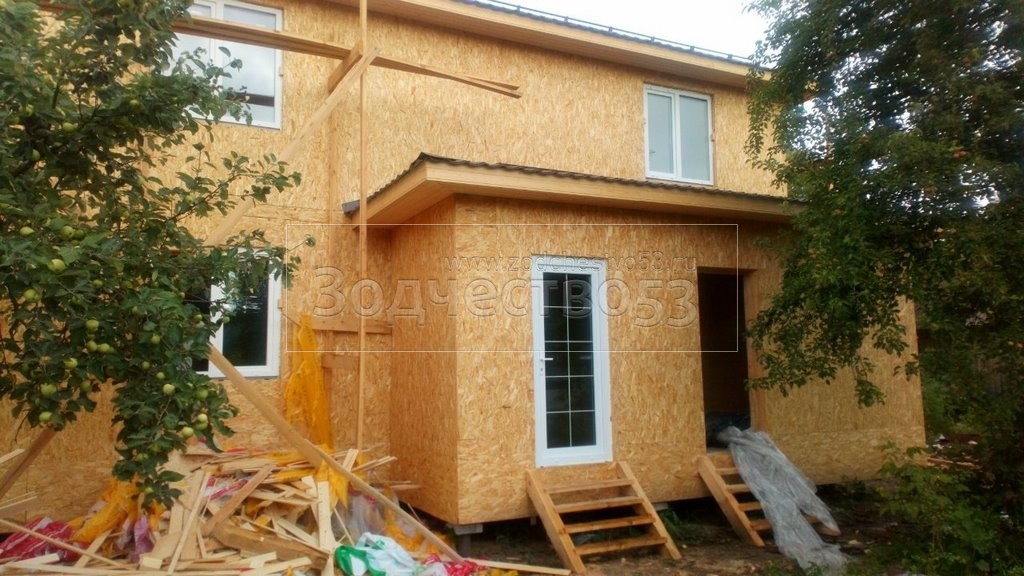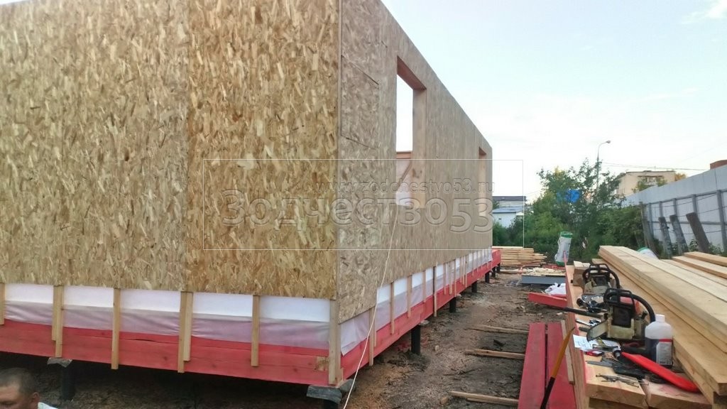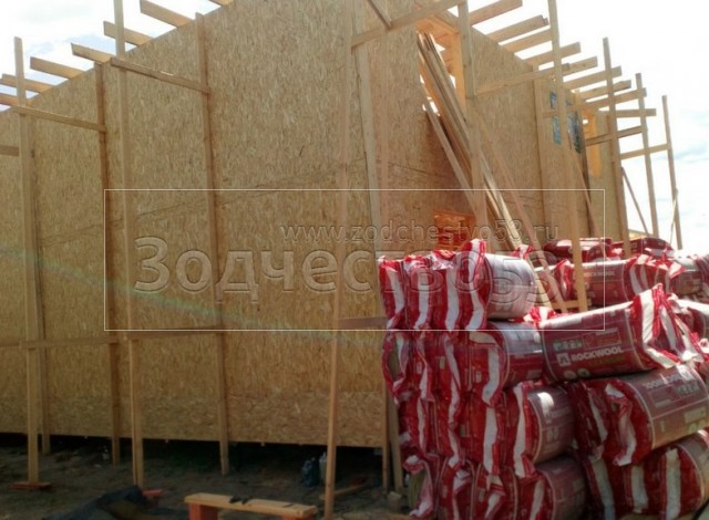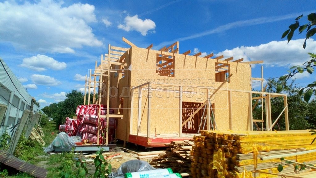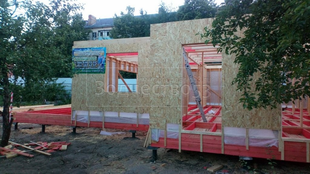 - Стены первого и второго этажей: каркасно-щитовые 40*150,с наружи обшивается фанерой ОСБ-9мм,внутри - вагонкой.