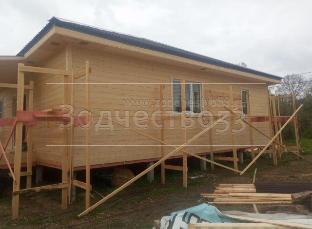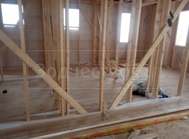 - Стены : каркасно-щитовые, каркас снаружи обшивается сухой Имитацией бруса, а внутри — сухой Вагонкой