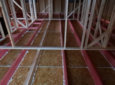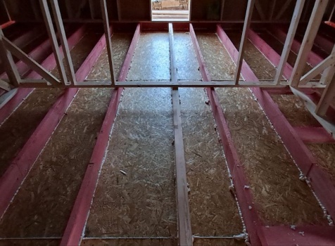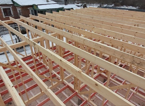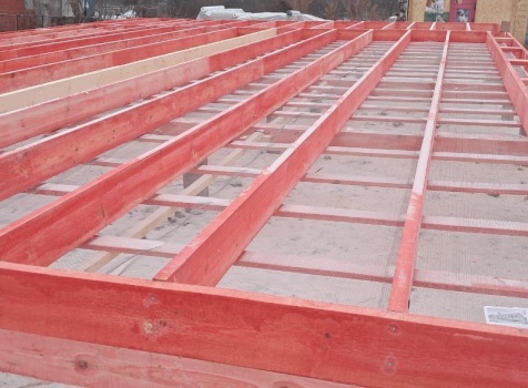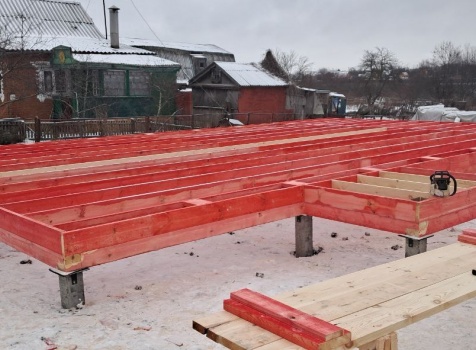 Лаги : брус 40×200. Двойные лаги под перегородки
