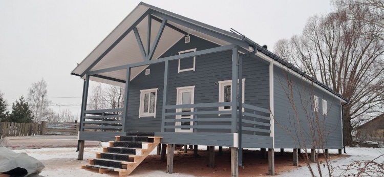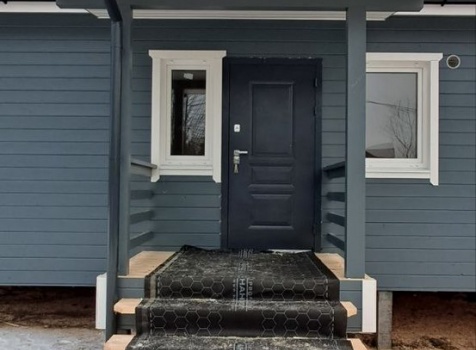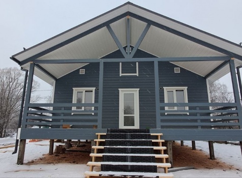 Крыльцо : открытое . Перила и балясины — Заводская покраска . Цвет — 7031 . Потолки подшиваются сухой Имитацией бруса — Заводская покраска . Цвет — Белый . Полы строганная доска