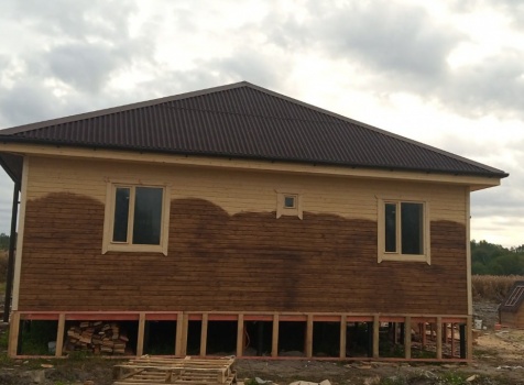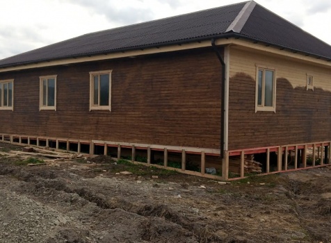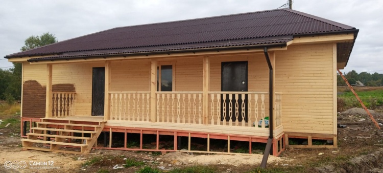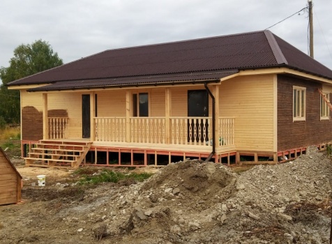 Постройка одноэтажного дачного жилого дома общими размерами 14.0×10.50 (14.0×9.0 дом каркасный Камерной сушки с утеплением в 200мм (стены) под общей четырехскатной крышей (тип конверта) и открытой террасы 9.0×1.50 под отдельной односкатной крышей.