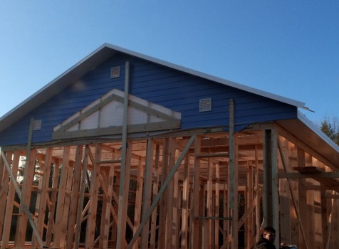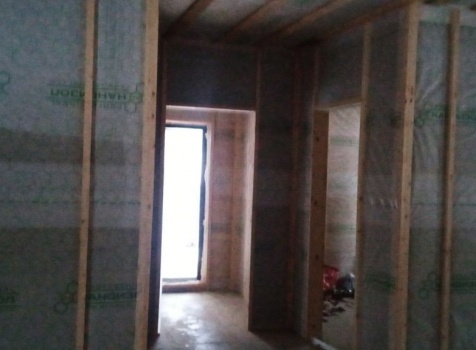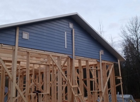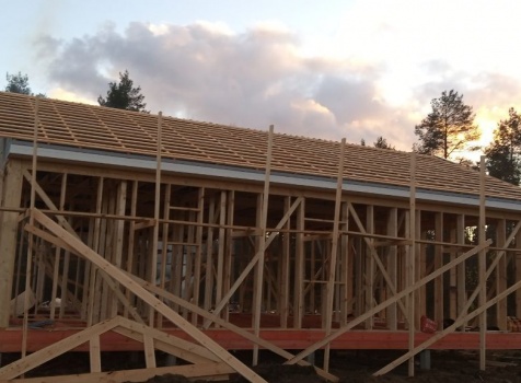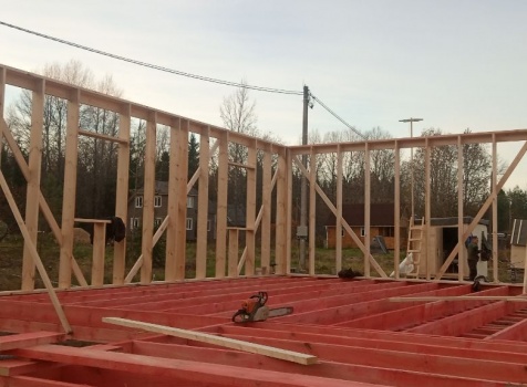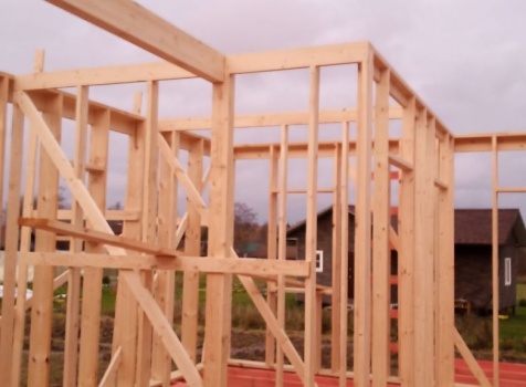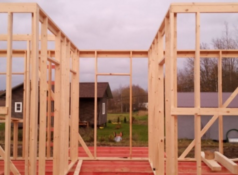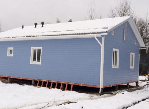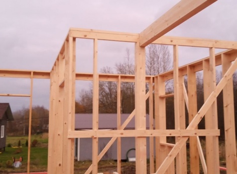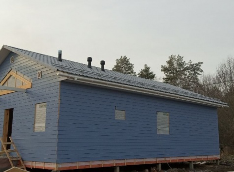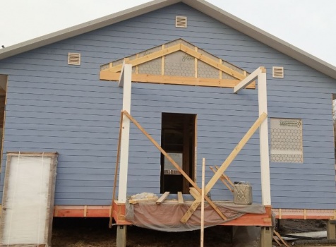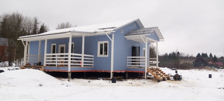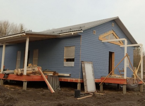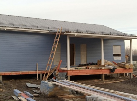 Постройка одноэтажного дома с открытой террасой и открытым крыльцом общими размерами 14.0×11.0 ( 12.0×8.0 дом ) каркасно-щитовой ( Камерной сушки ) с утеплением в 200 мм ( стены ) под двухскатной крышей и ( 6.0×3.0 открытая терраса ) под отдельной односкатной крышей и ( 2.0×3.0 открытое крыльцо ) под отдельной двухскатной крышей: https://zodchestvo53.ru/valeriya