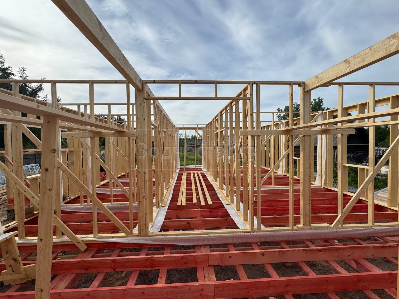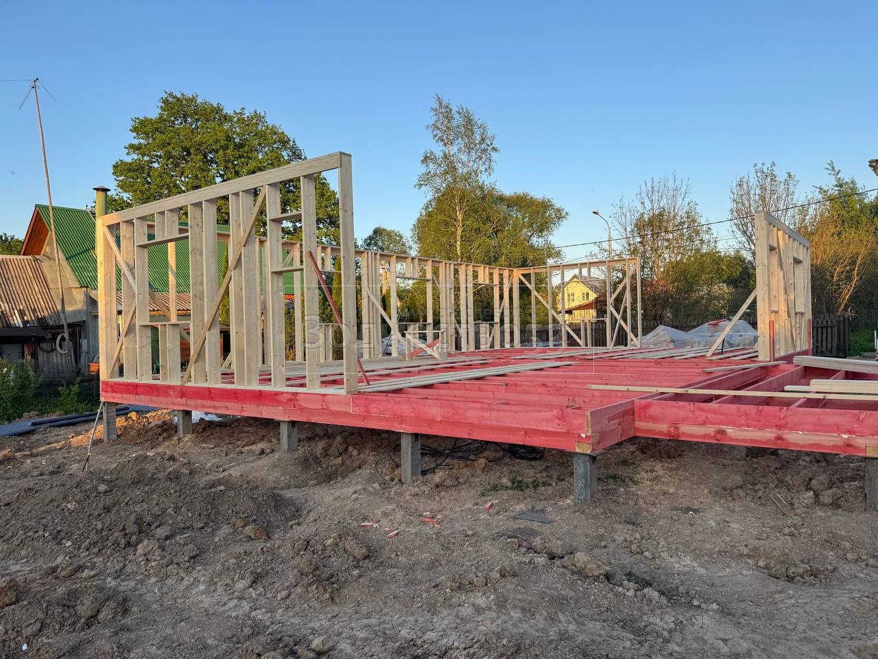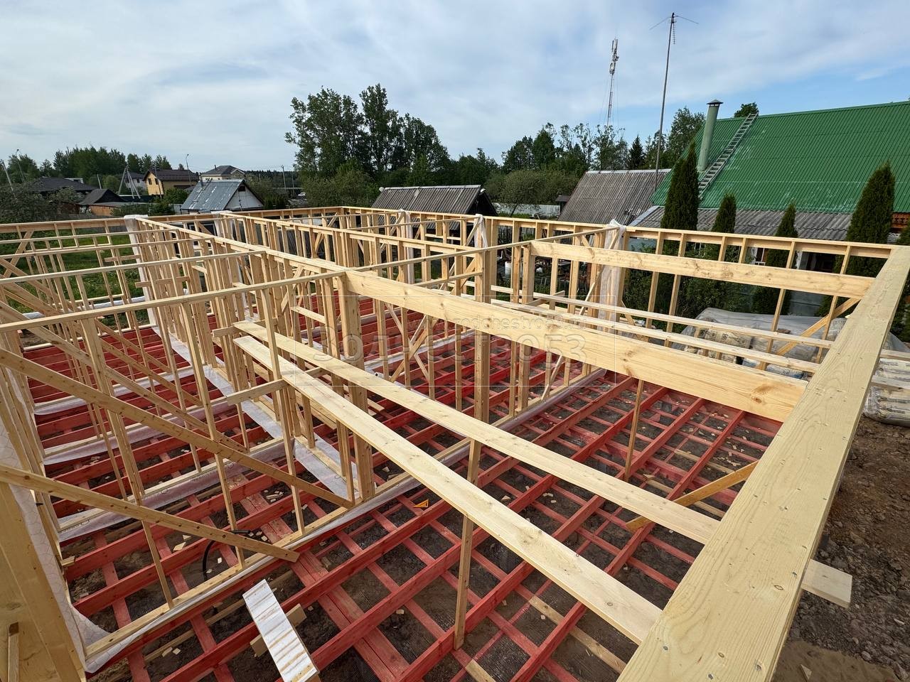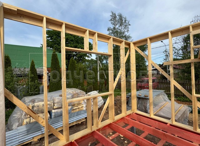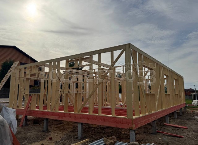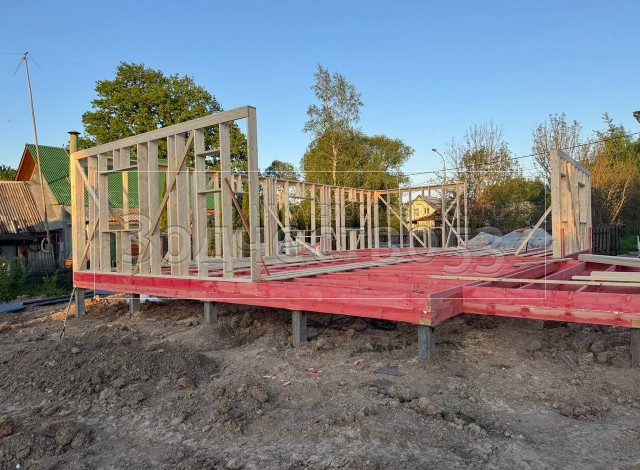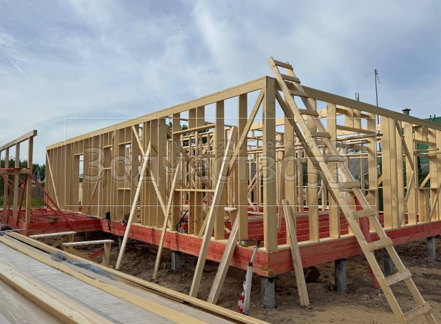 - Стены : каркасно-щитовые, каркас снаружи и внутри обшивается сухой Имитацией бруса