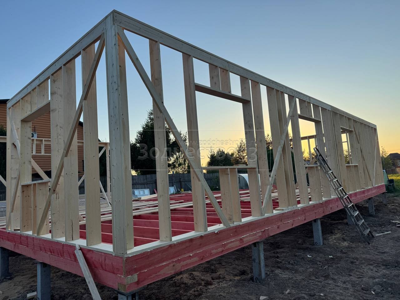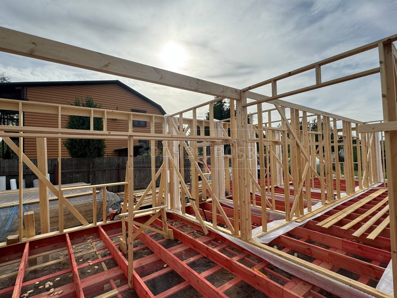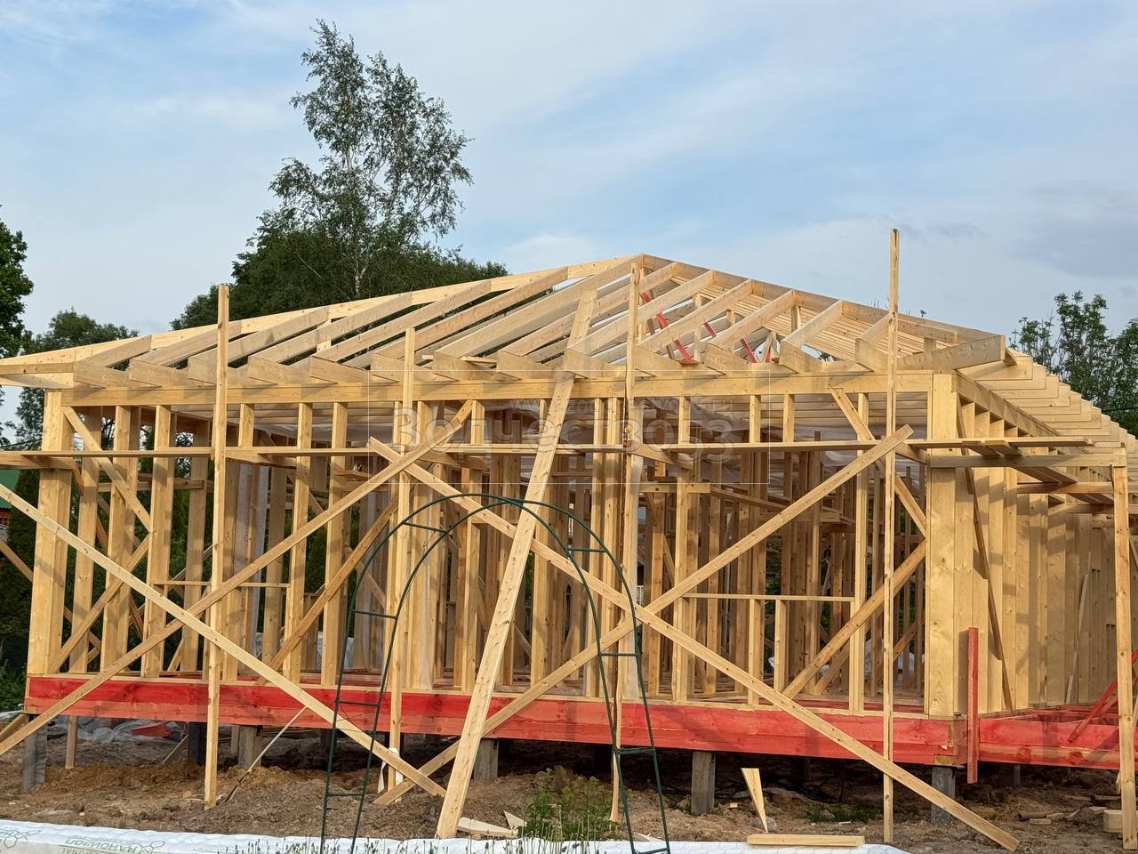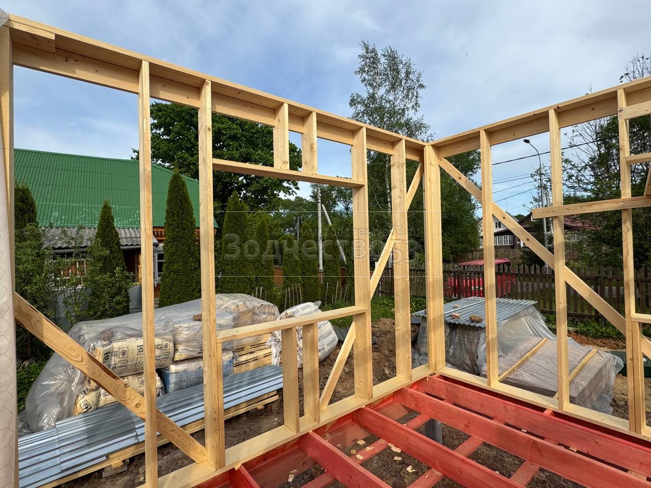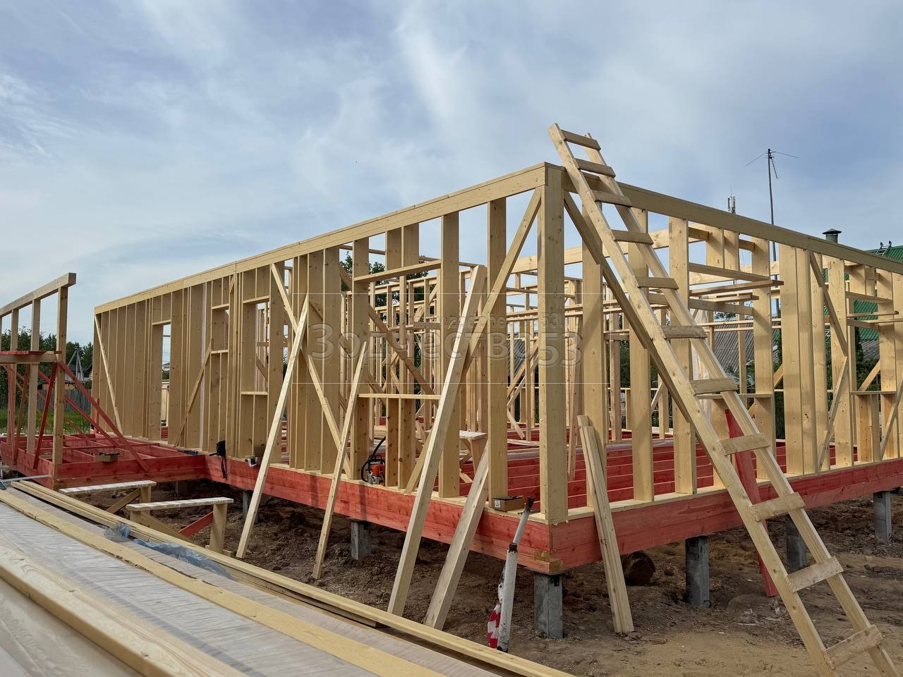 - Стены : каркасно-щитовые, каркас снаружи и внутри обшивается сухой Имитацией бруса
