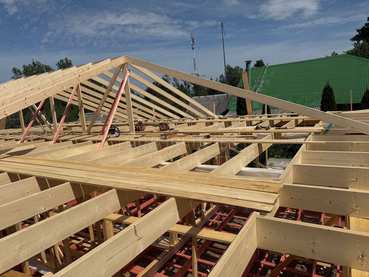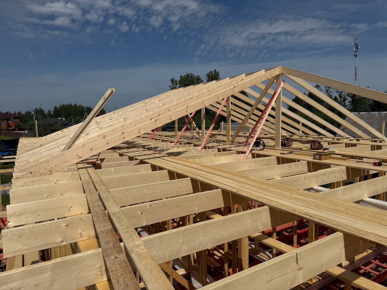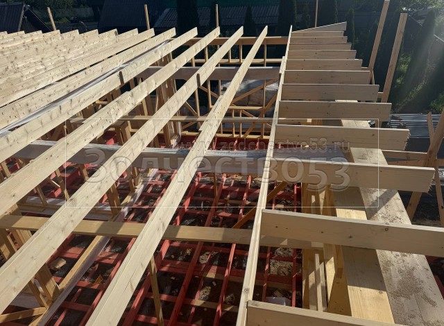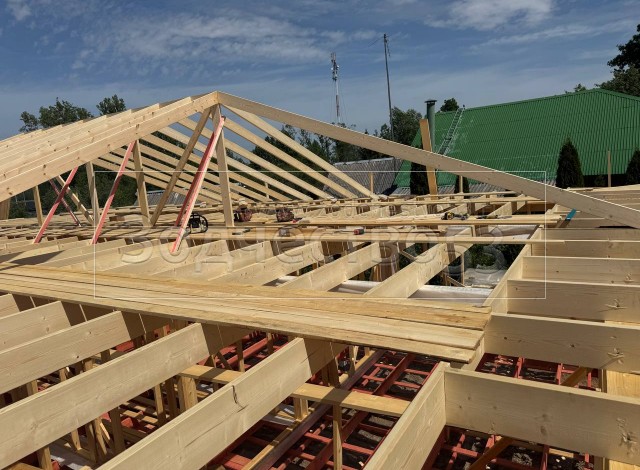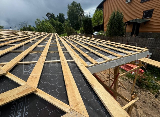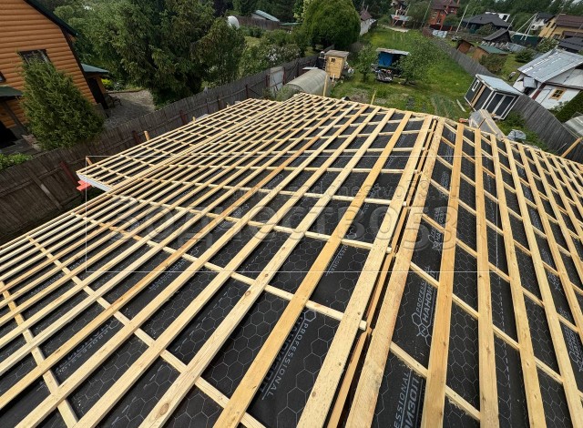- Обрешетка крыши : обрезная доска