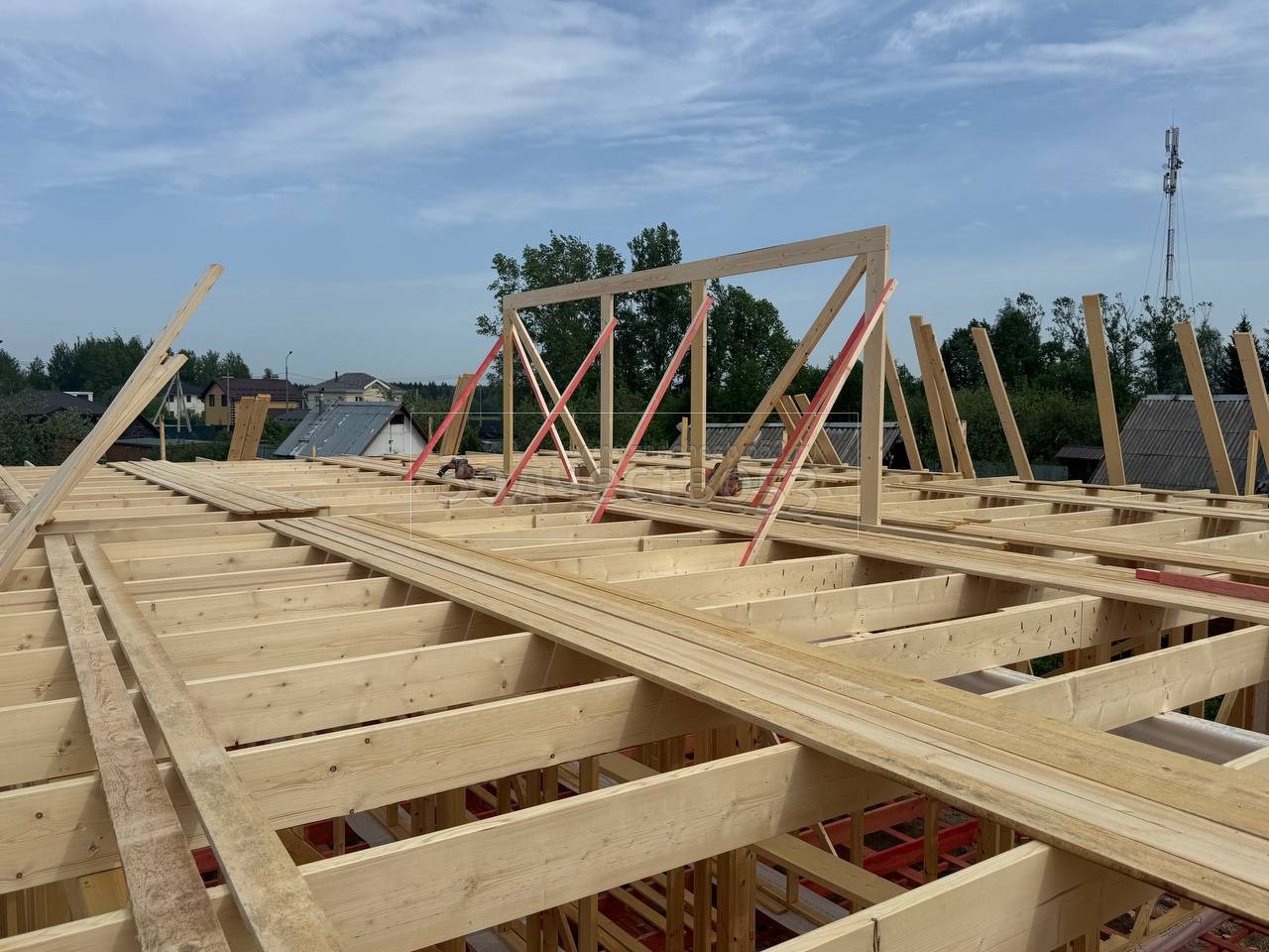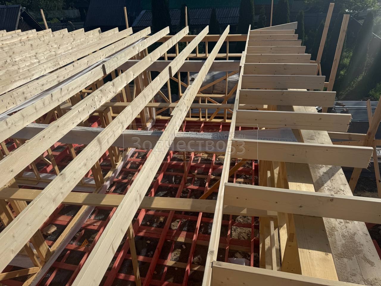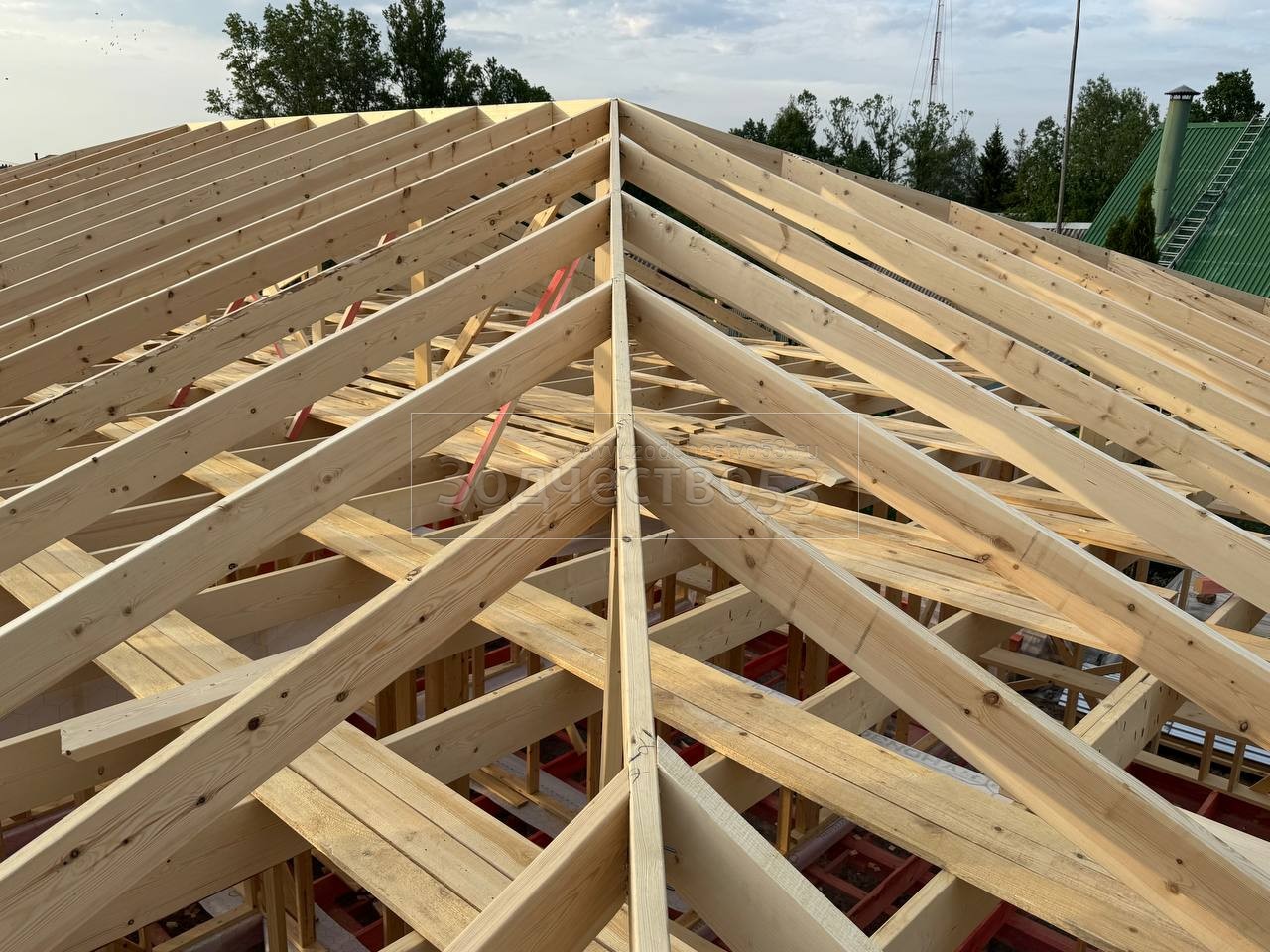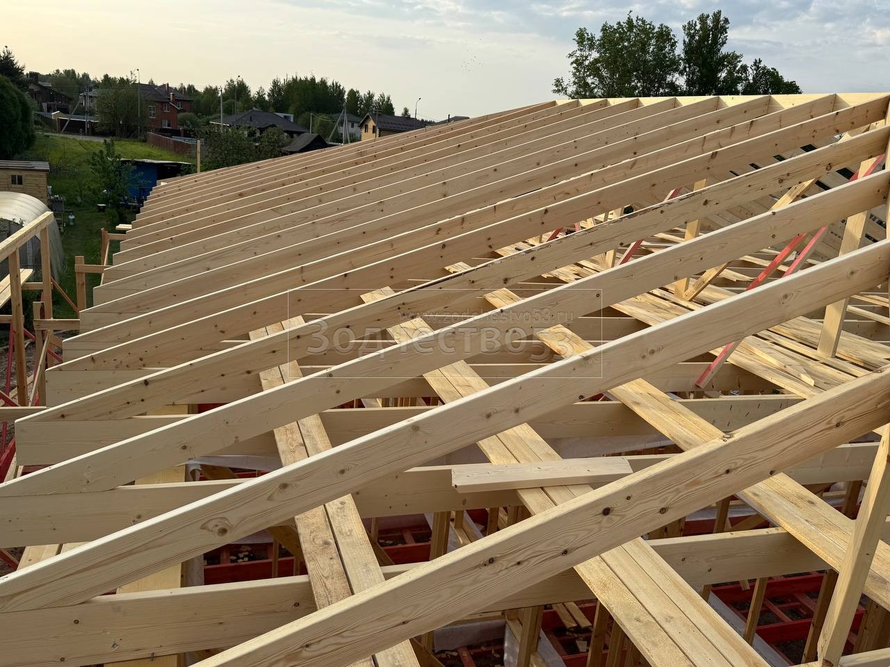 - Обрешетка крыши : обрезная доска