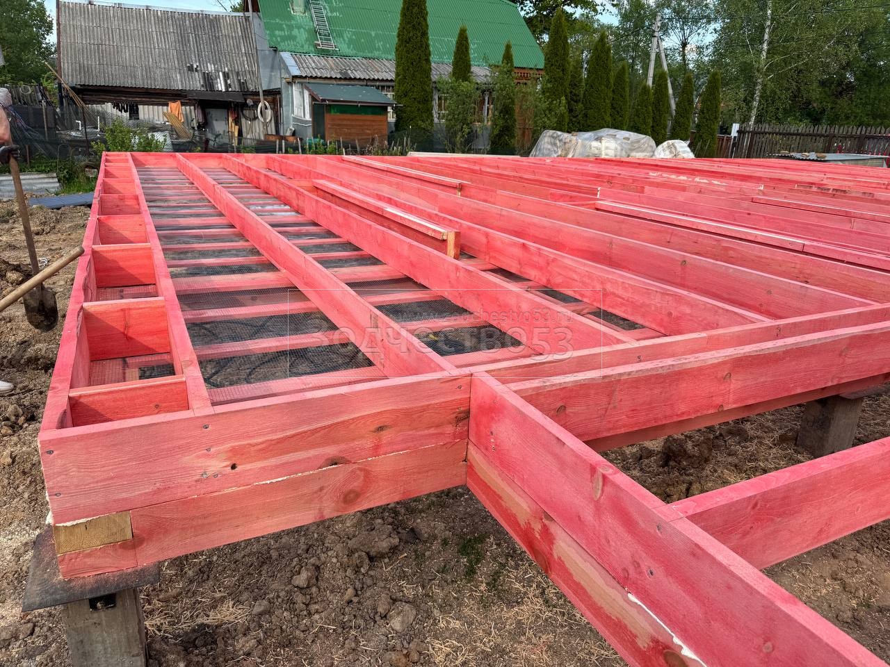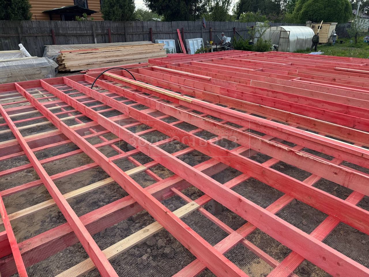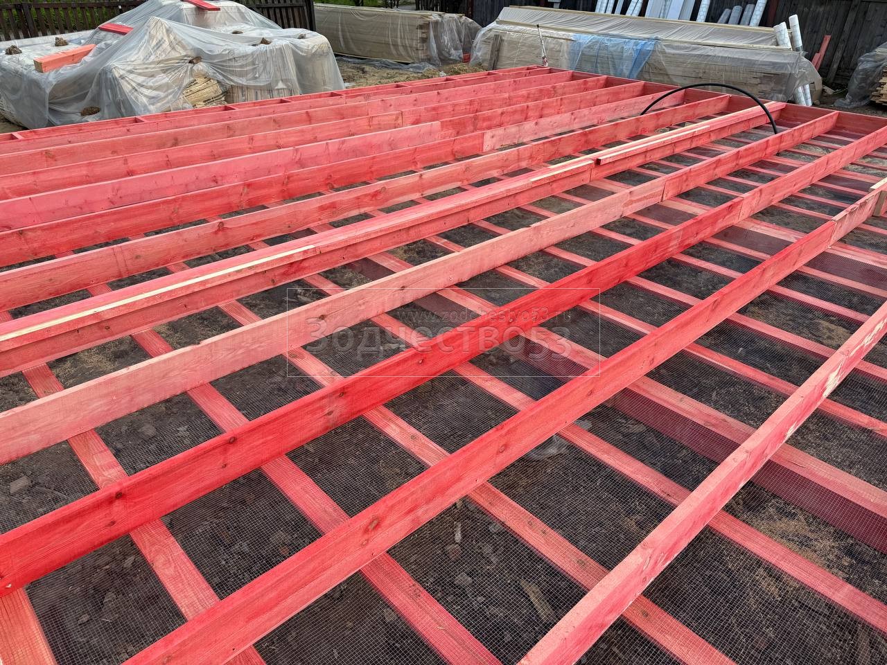 - Полы : обрезная доска плюс Квик Дек. Установка сетки от грызунов