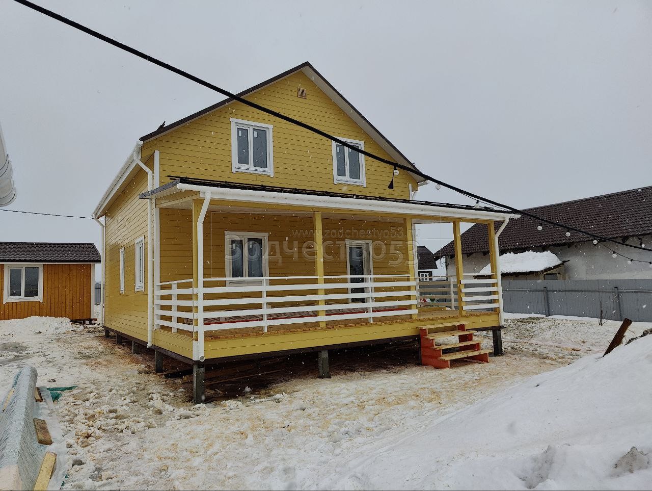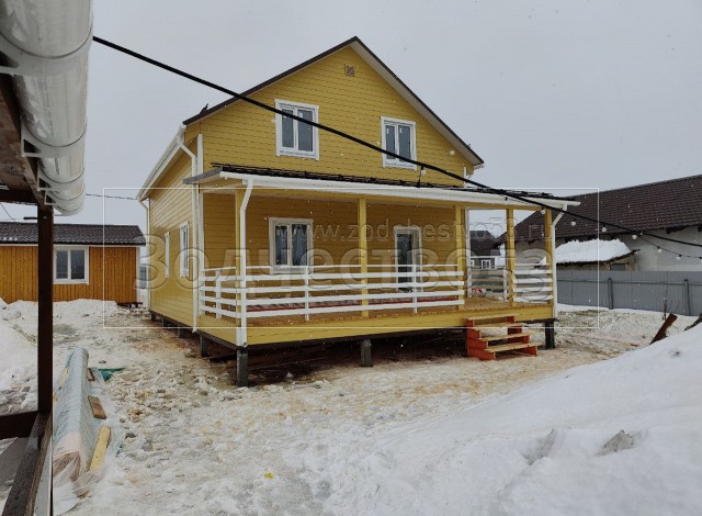 - Второй этаж полутораэтажный: стены каркасно-щитовые, снаружи обшиваются Имитацией бруса ( Заводская покраска . Цвет RAL 2673 ), а внутри стены ( без отделки ).