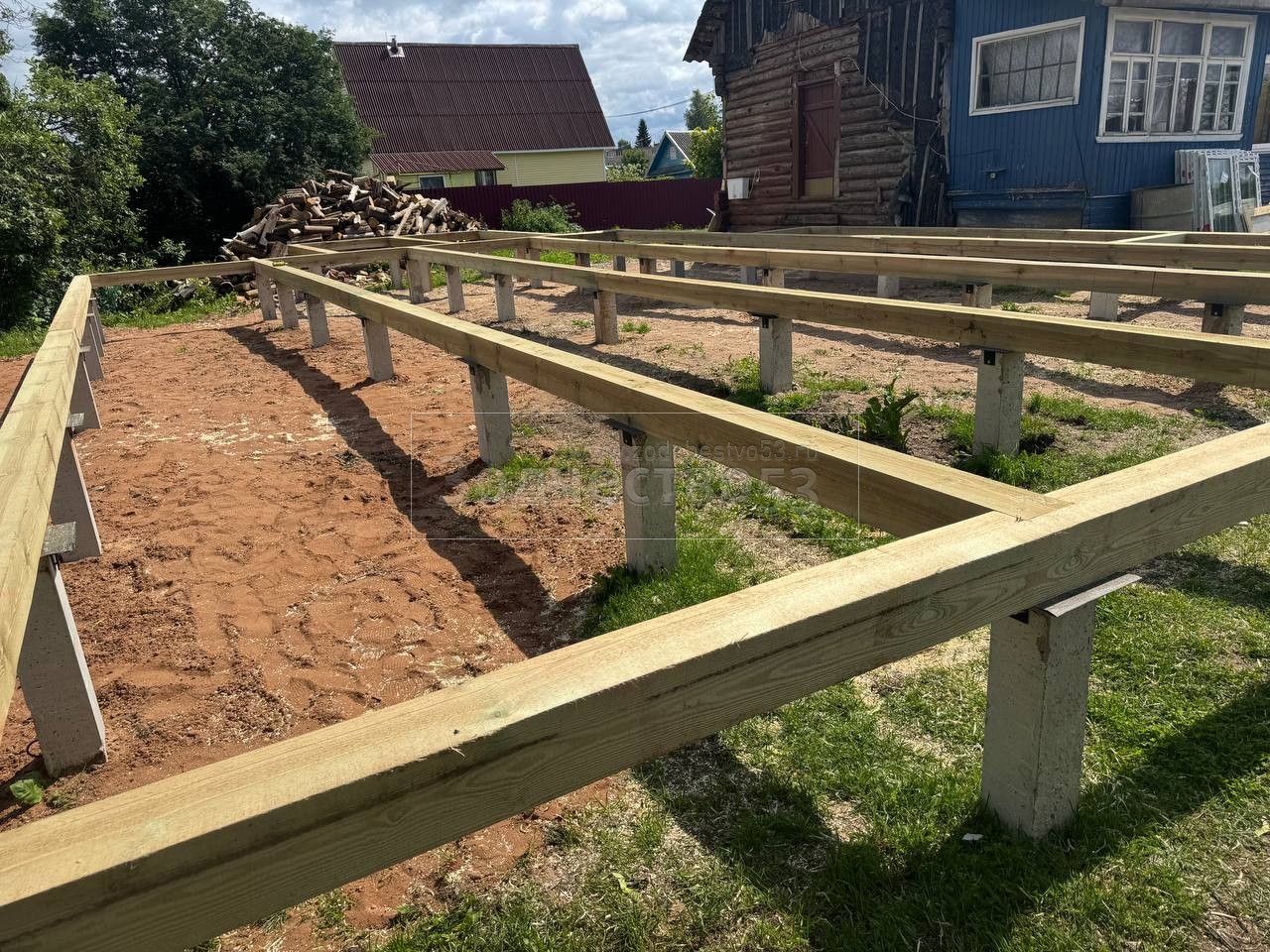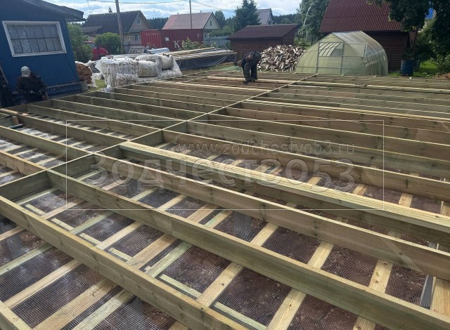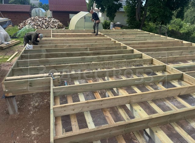 - Полы чистовые : обрезная доска плюс Квик Дек. Установка сетки от грызунов