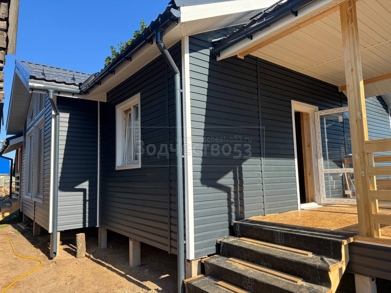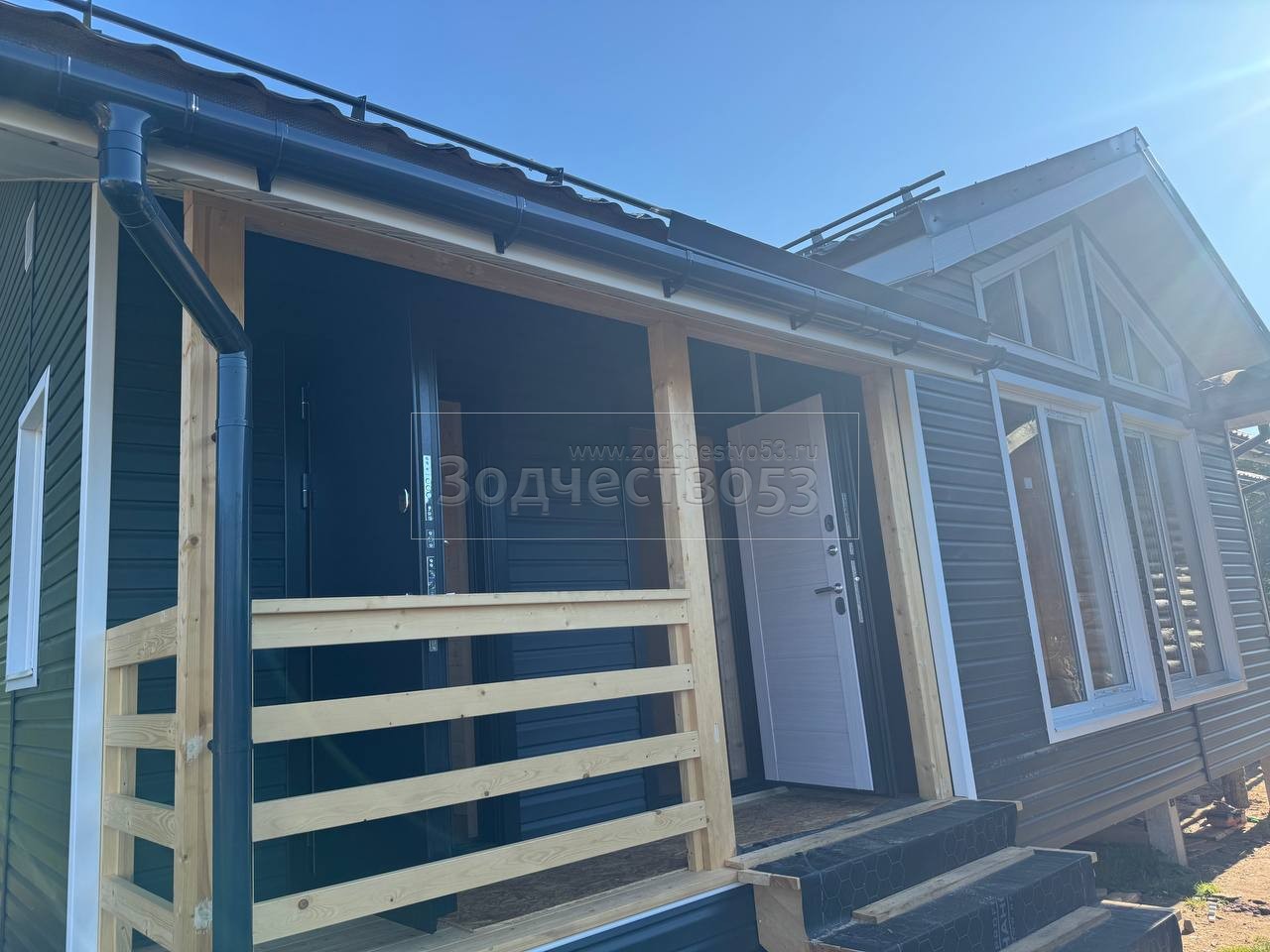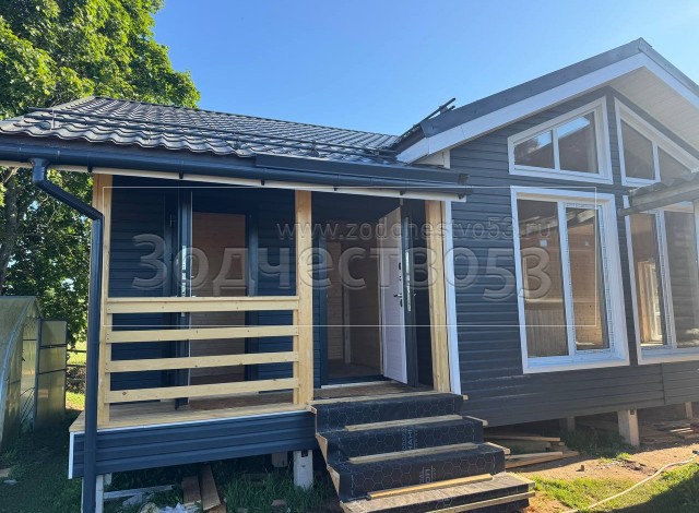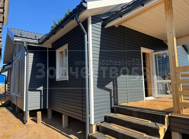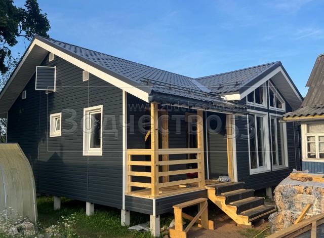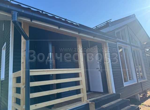 Постройка одноэтажного дома с открытой террасой и открытым крыльцом общими размерами 15.50×8.50 ( 12.0×7.50 дом и 3.50×1.0 открытое крыльцо ) каркасный, Камерной сушки, с утеплением в 200 мм ( стены дома ) под общей двухскатной крышей и ( 5.0×1.0 дом ) под отдельной двухскатной крышей 3 Фронтон и ( 3.50×3.50 открытая терраса ) под отдельной двухскатной крышей: https://zodchestvo53.ru/zara