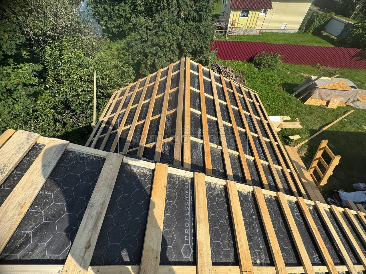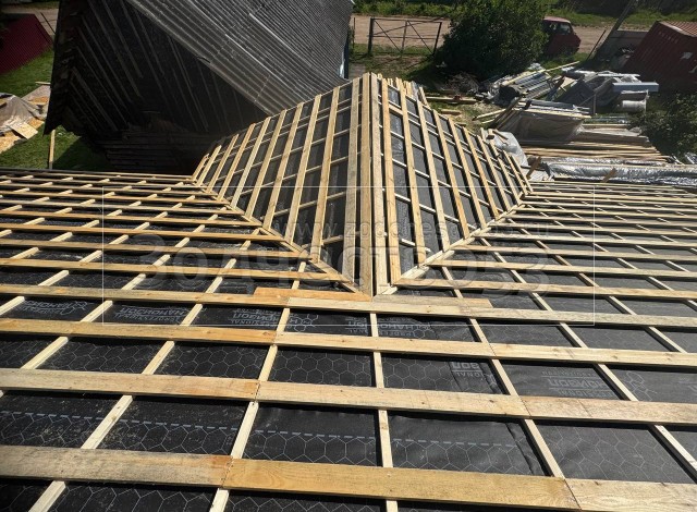 - Обрешетка крыши : обрезная доска