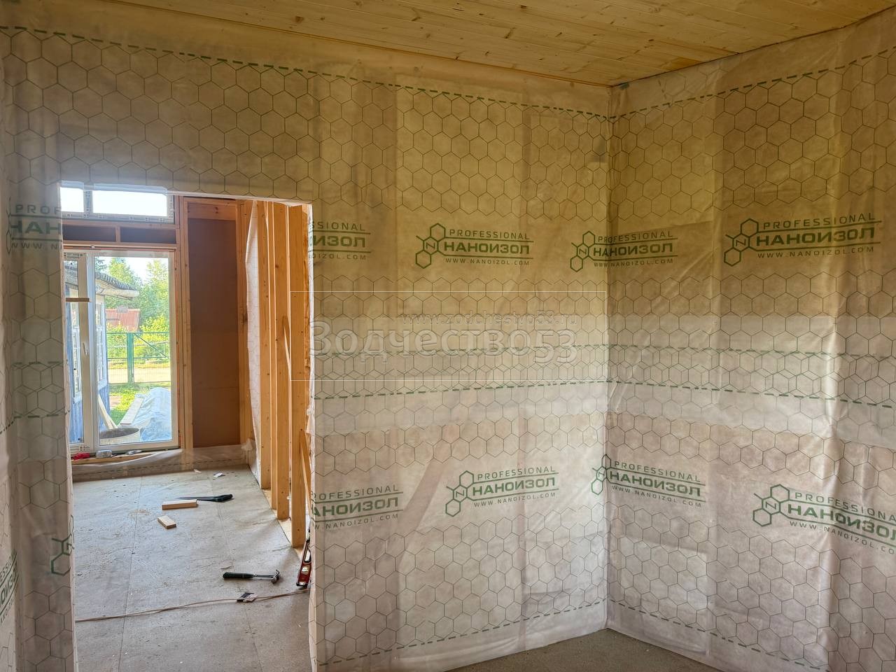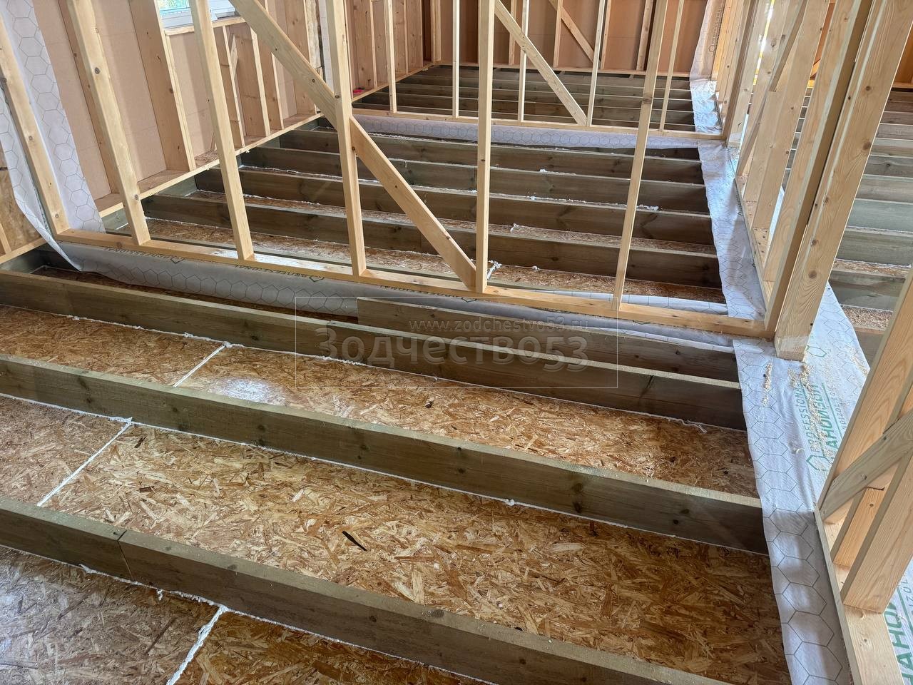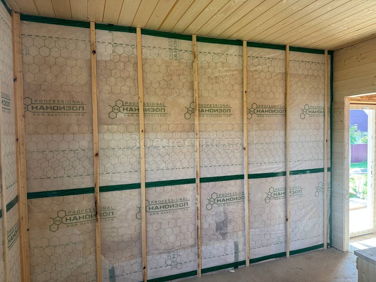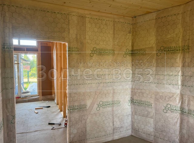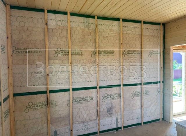 - Стены : каркасно-щитовые ,обшиваются снаружи Белтермо и Влагостойкой Фанерой ОСБ , а внутри сухой Имитацией бруса