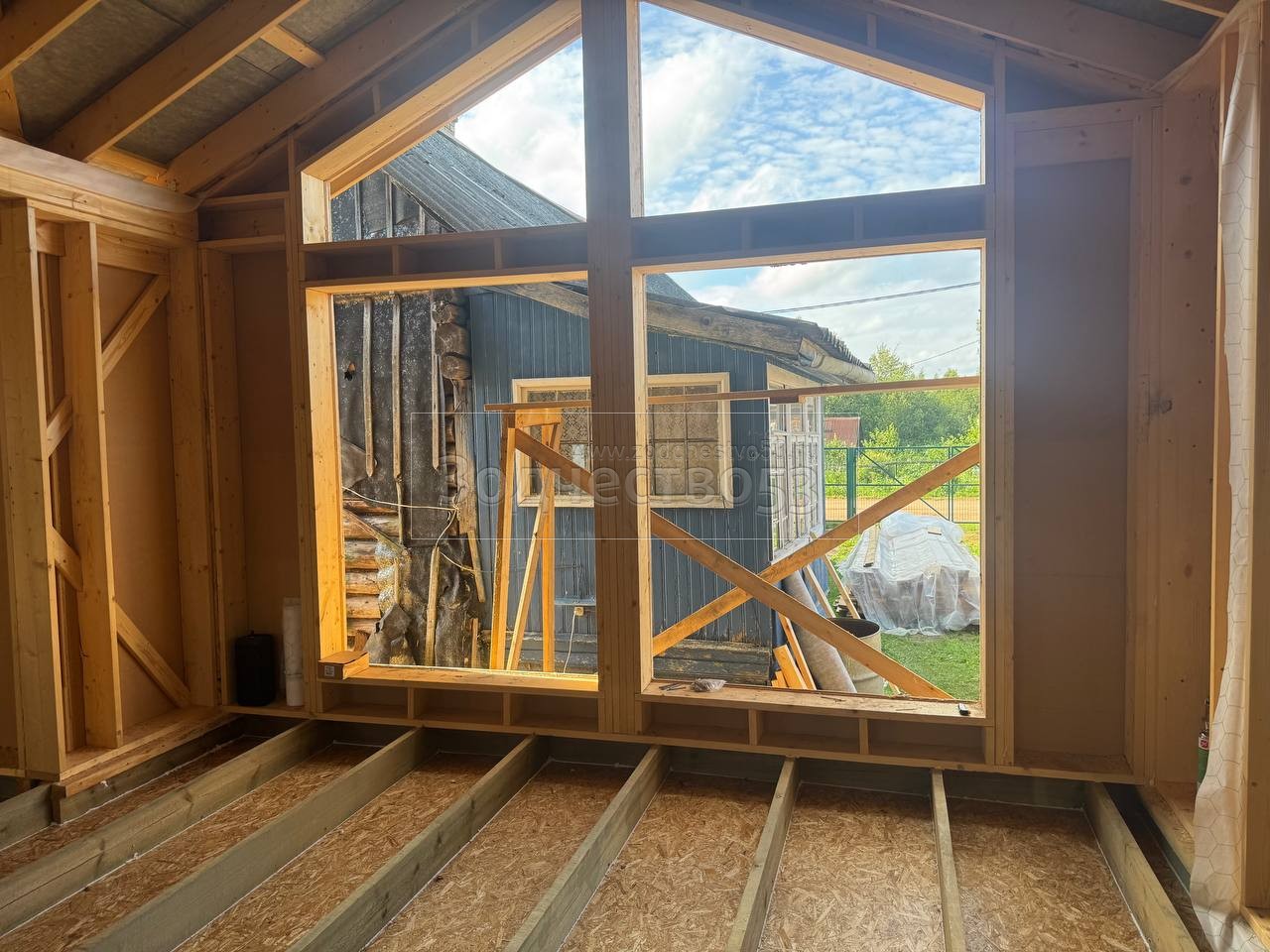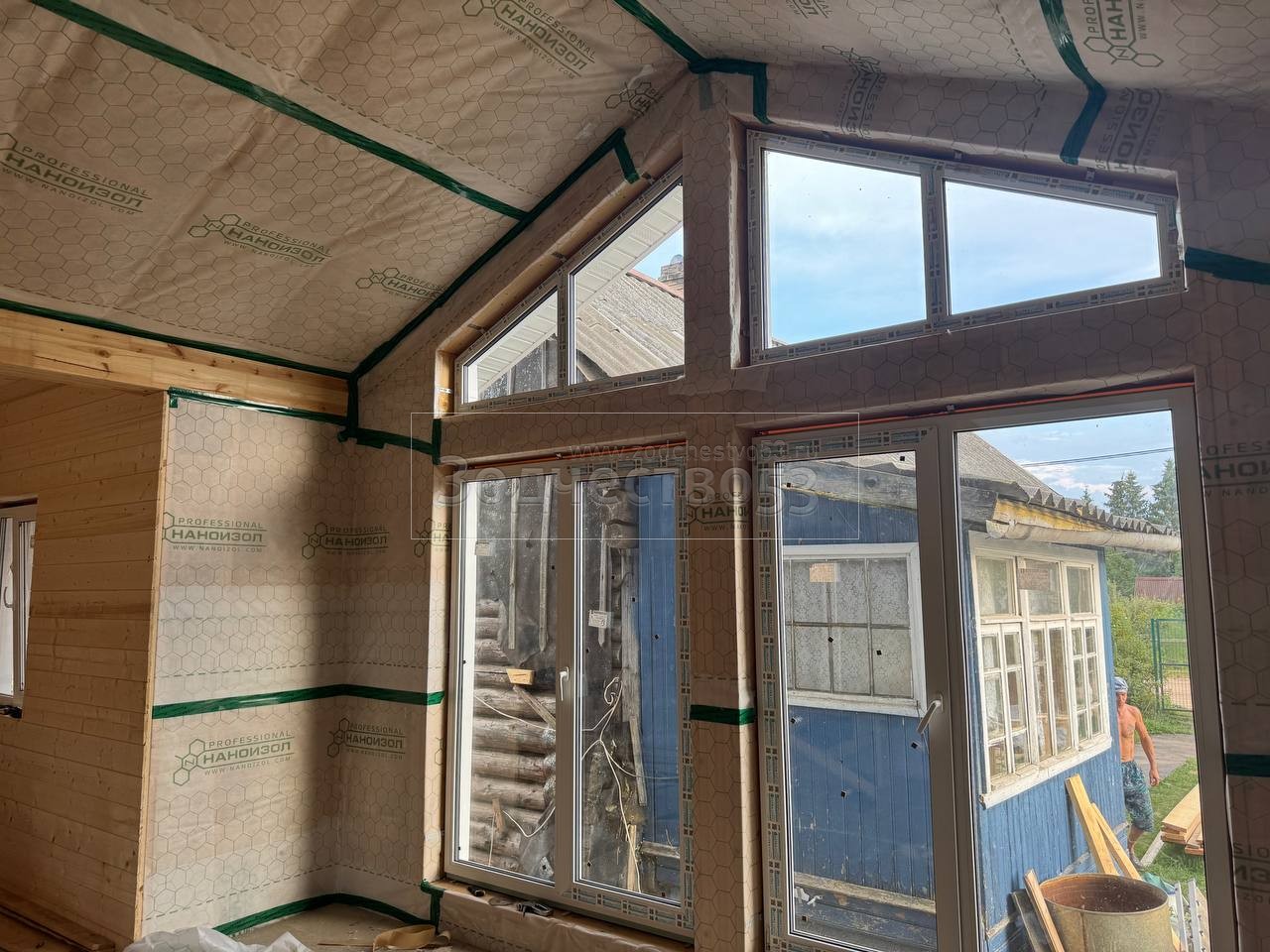 - Фронтоны на доме: каркасно-щитовые, обшиваются снаружи Белтермо ,Влагостойкой Фанерой ОСБ и Сайдингом
