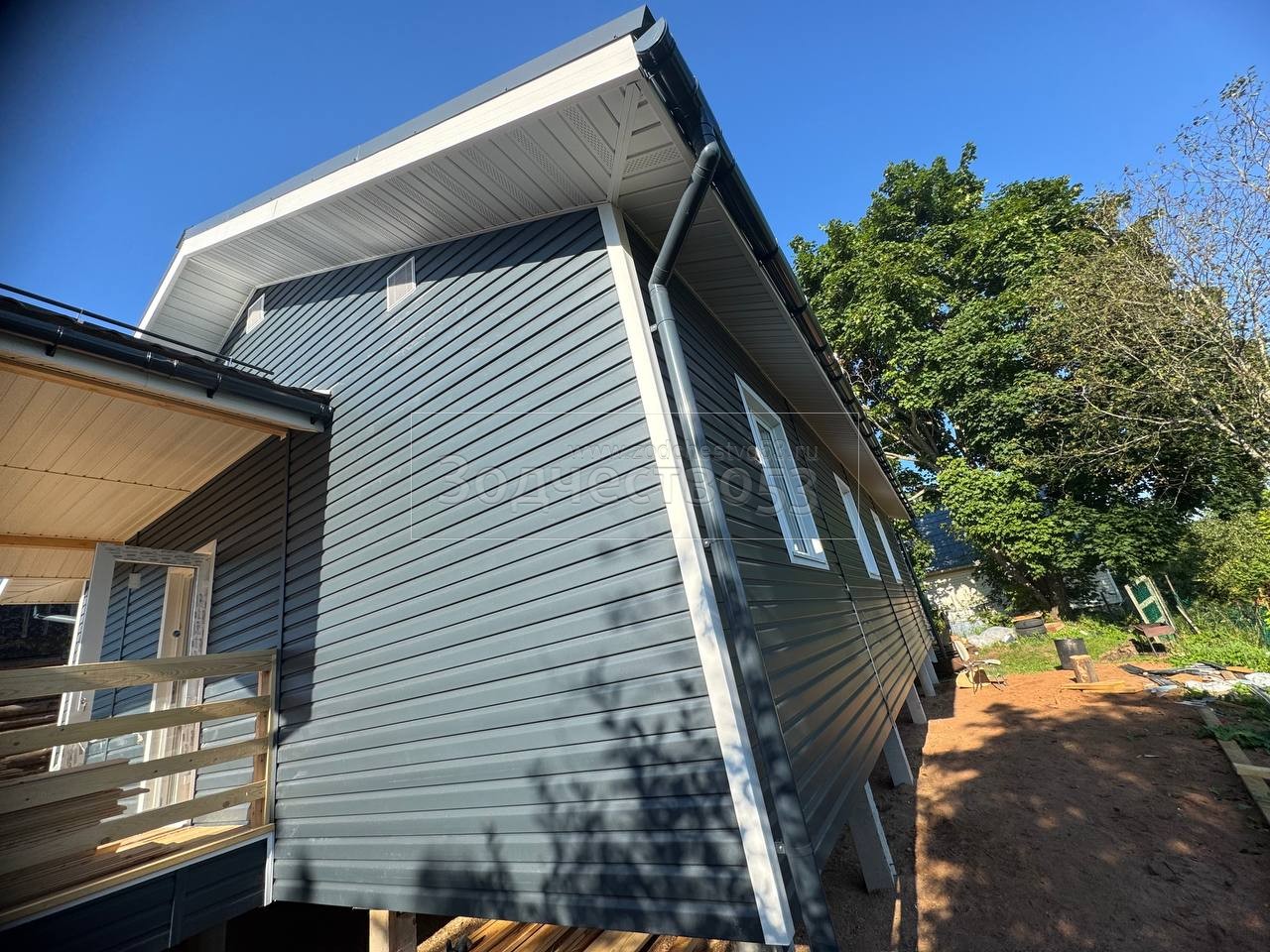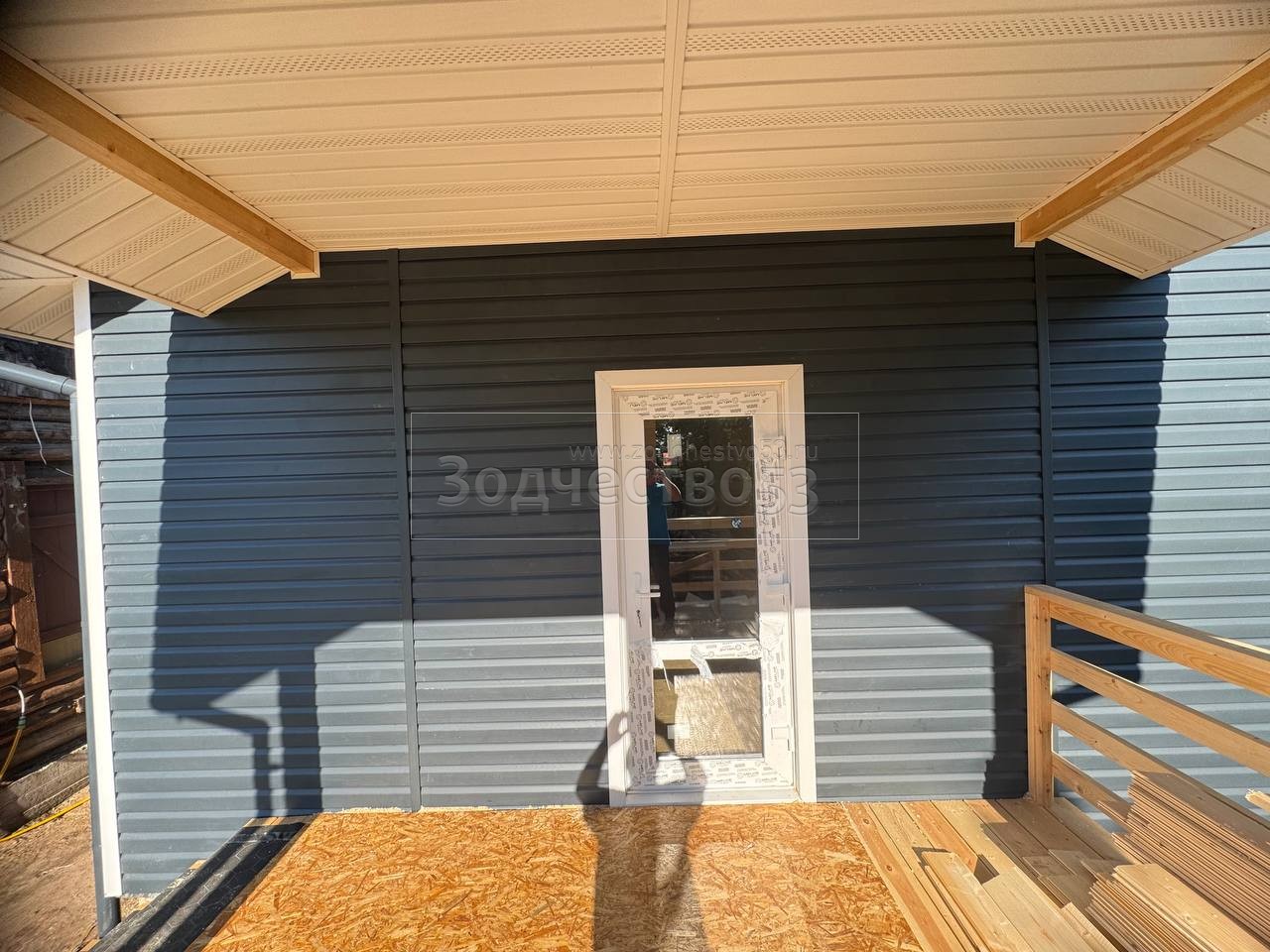 - Крыльцо : открытое . Полы сухая строганная доска. Потолки прямые и подшиваются сухой строганной доской и Перфорированными Софитами