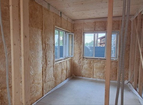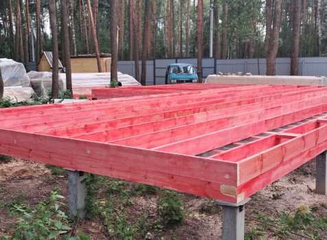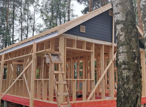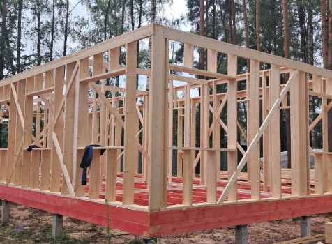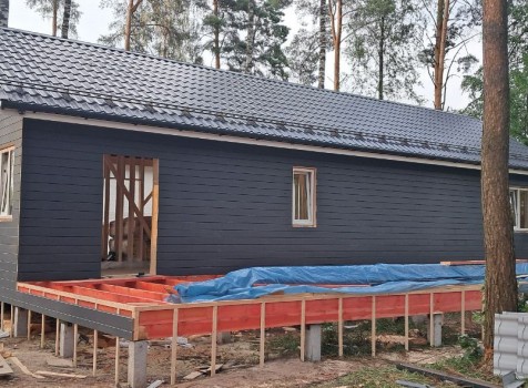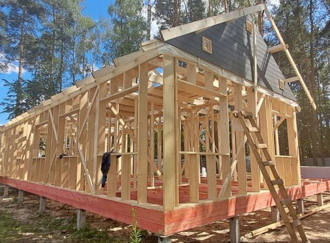 Постройка одноэтажного дома с открытой террасой общими размерами 15.0×10.0 (15.0×6.0 дом ) каркасно-щитовой ( Камерной сушки ) с утеплением в 200 мм ( стены ) под двухскатной крышей и ( 7.0×4.0 открытая терраса ) без кровли