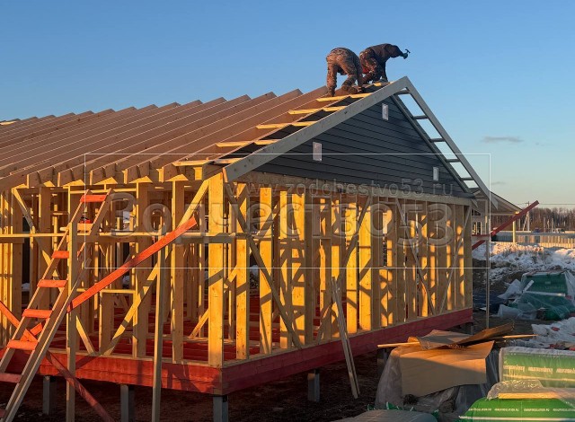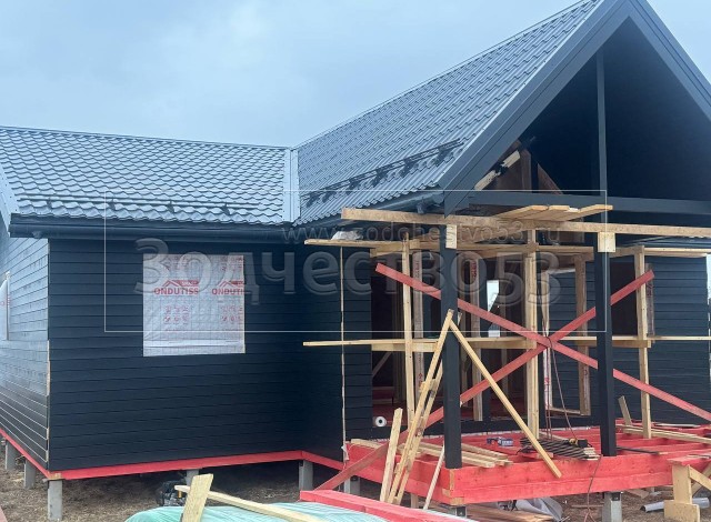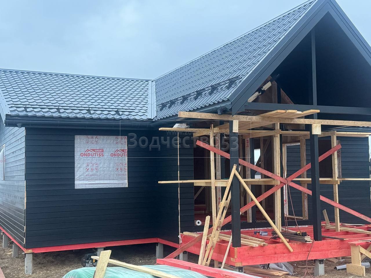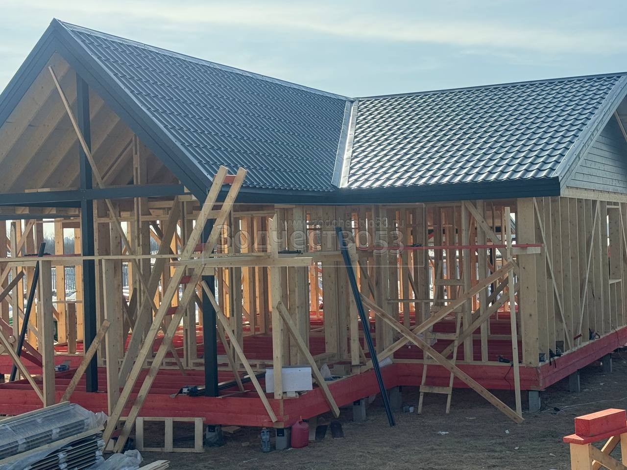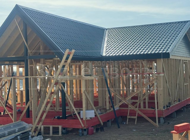 Постройка одноэтажного дома с открытой террасой и крыльцом, общими размерами 16.50×10.50 ( 11.0×10.50 дом ) каркасный (Камерной сушки) с утеплением в 200 мм (стены) под двухскатной крышей и ( 1.50×4.0 дом и 2.50×4.0 открытая терраса ) под отдельной двухскатной крышей 3 Фронтон и ( 4.0×1.0 открытая терраса ) без кровли плюс ( 1.50×2.0 открытое крыльцо ) под отдельной односкатной крышей по проекту : https://zodchestvo53.ru/evdokiya