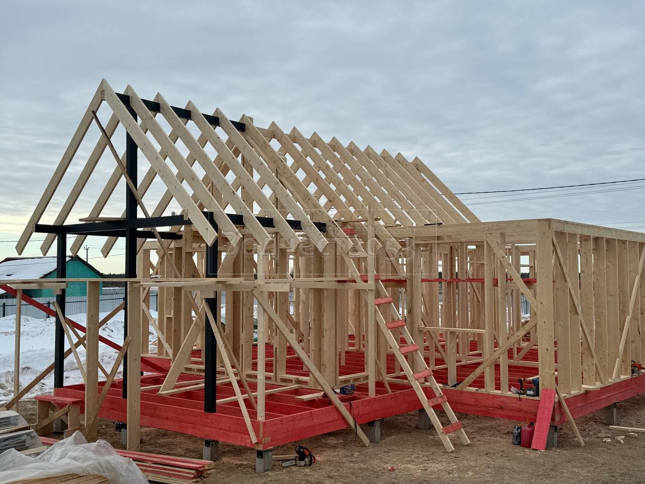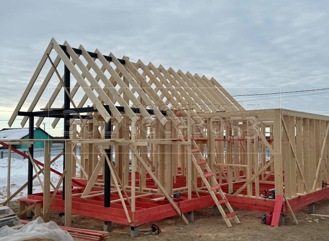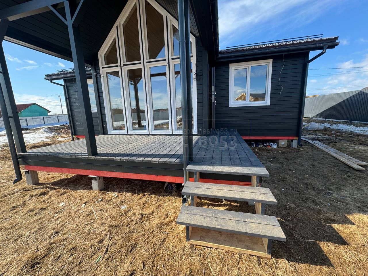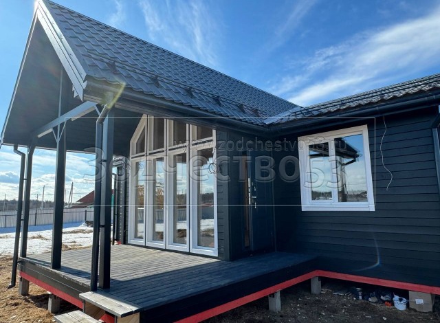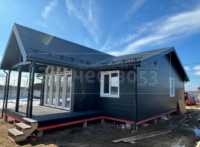 Постройка одноэтажного дома с открытой террасой и крыльцом, общими размерами 16.50×10.50 ( 11.0×10.50 дом ) каркасный (Камерной сушки) с утеплением в 200 мм (стены) под двухскатной крышей и ( 1.50×4.0 дом и 2.50×4.0 открытая терраса ) под отдельной двухскатной крышей 3 Фронтон и ( 4.0×1.0 открытая терраса ) без кровли плюс ( 1.50×2.0 открытое крыльцо ) под отдельной односкатной крышей по проекту : https://zodchestvo53.ru/evdokiya