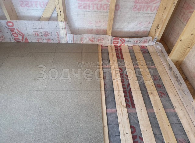 • Потолки : подшиваются сухой Вагонкой ( крепятся на пневмо инструмент )