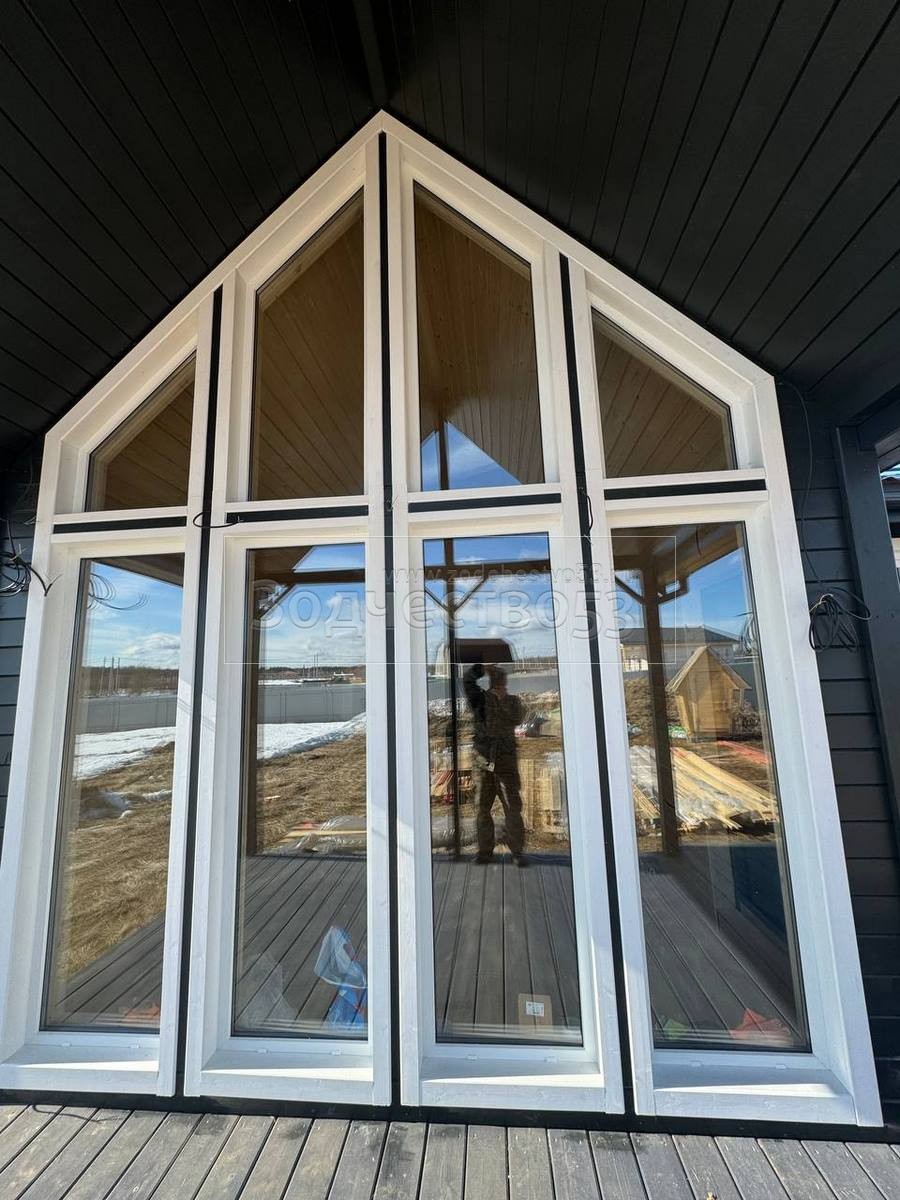 • Окна : ПВХ двухкамерные поворотно — откидные ( белые ) .