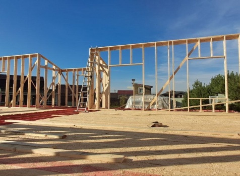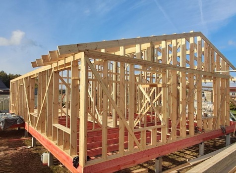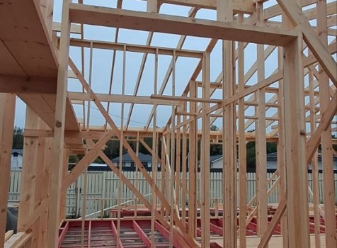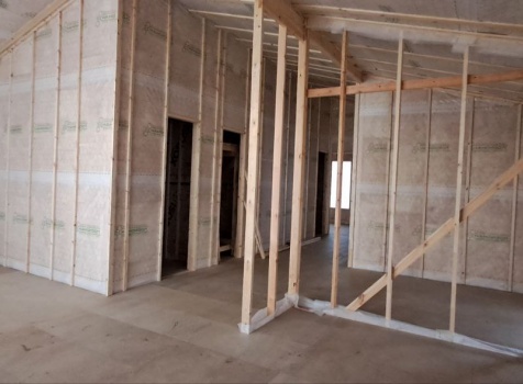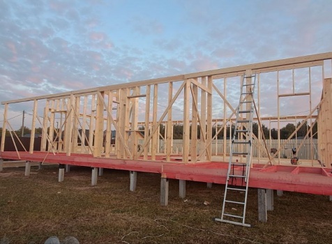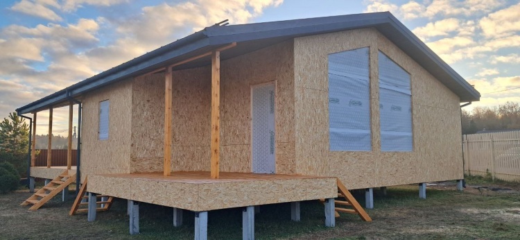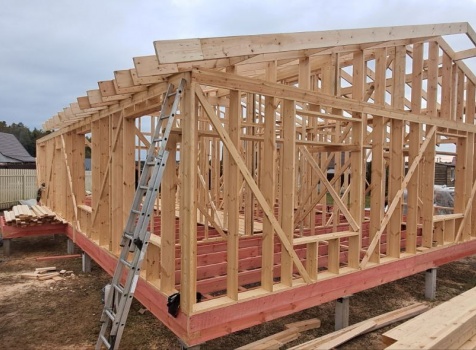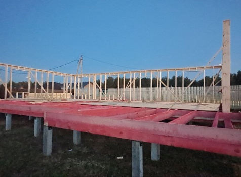 Постройка одноэтажного дома с двумя открытыми террасами и крыльцом , общими размерами 16.0×13.50 ( 15.0×8.750 и 3.950×2.250 дом ) каркасный ( Камерной сушки ) с утеплением в 200 мм ( стены ) и ( 7.20×2.250 открытая терраса ) и ( 3.850×2.250 открытая терраса ) под общей двухскатной крышей и ( 4.850×1.0 и 1.0×2.250 часть открытой террасы Г образная ) без кровли и ( 2.0×1.50 открытое крыльцо ) с выходом ската с общей крыши