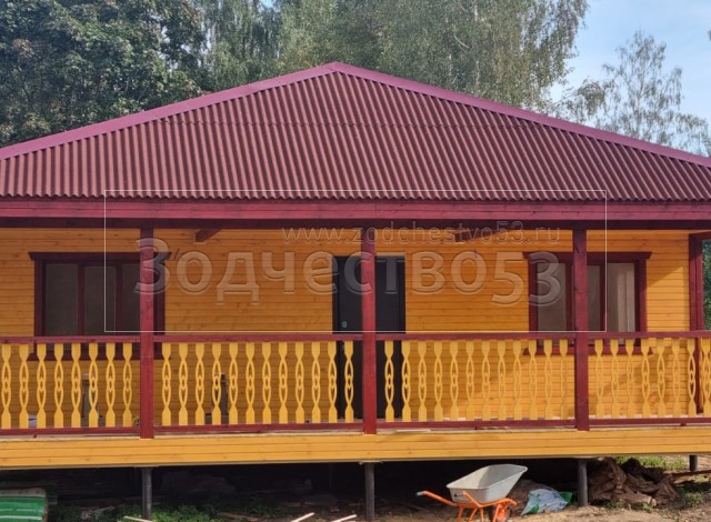 - Терраса: Открытая с резными балясинами и перилами . Потолки подшиваются Вагонкой. Полы шпунтованная доска
