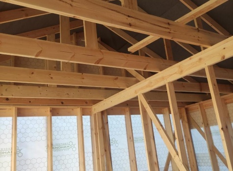 На достройку одноэтажного дома общими размерами 6.0×7.0 ( дом ) каркасно-щитовой ( Камерной сушки ) с утеплением в 200 мм (стены) под двухскатной крышей .