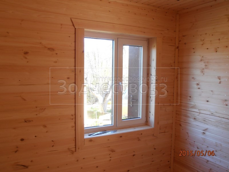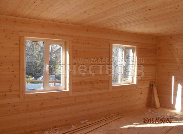 - Стены: каркасно-щитовые 40×150, обшиты внутри вагонкой, снаружи блокхаусом с утеплением в 150 мм., с двойной парогидроизоляцией.