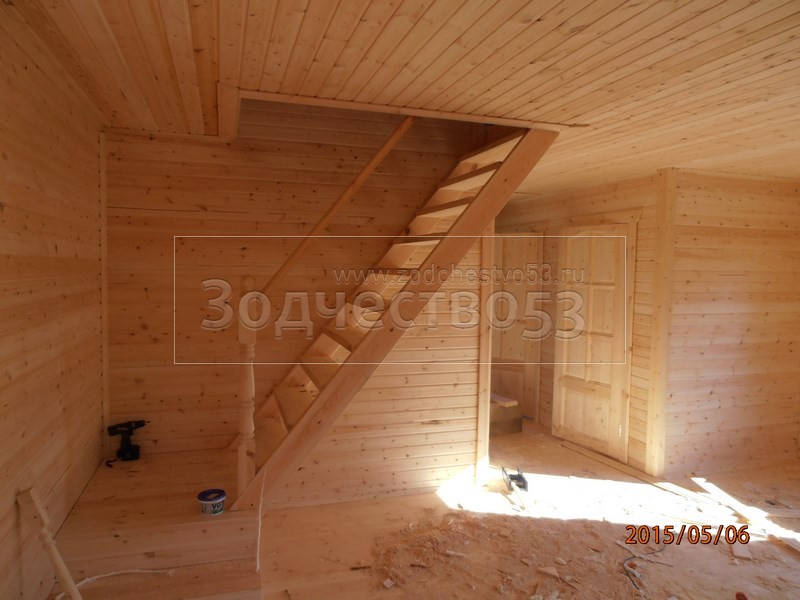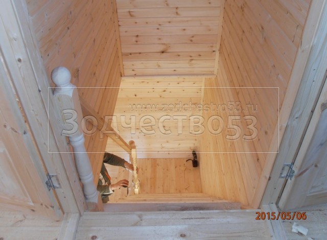 - Перегородки второго этажа: каркасно-щитовые без утепления обшиты вагонкой с двух сторон.