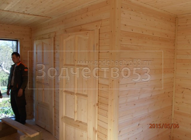 - Перегородки: каркасно-щитовые 40×100 без утепления обшиты вагонкой с двух сторон.