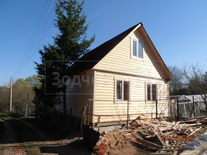 Каркасный дом размерами 6.0×7.5 с утеплением в 150 мм. под двухскатной крышей. Построен: в г. Тула, посёлок Косая Гора, деревня Судаково.