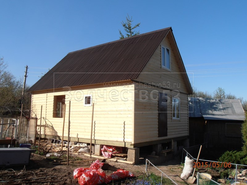 - Фронтоны: каркасно-щитовые высотой 3.0 метра, обшиты блокхаусом с утеплением в 150 мм., с проложкой парогидроизоляции.