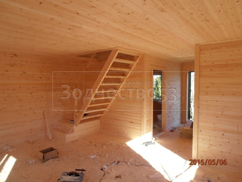 - Чистовые полы первого и второго этажей: 28 мм., шпунтованная доска с утеплением в 150 мм., с двойной проложкой парогидроизоляции.